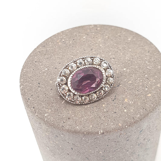 Antique Solid Silver Amethyst Paste Brooch Victorian Cluster Diamond Pastes Oval Shape Genuine 1800s Vintage Womens Ladies Jewelry Jewellery