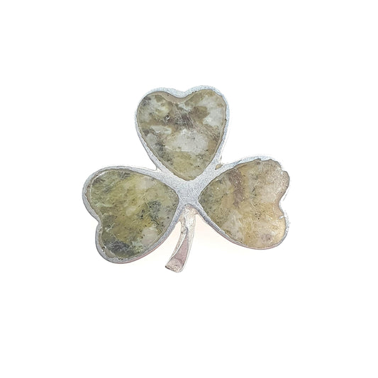 Vintage Sterling Silver Connemara Marble Clover Brooch Irish Lucky Dublin Three Leaf Green Shamrock Celtic Gaelic Jewelry Jewellery