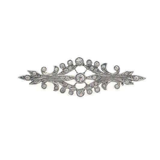 Antique Victorian Solid Silver Diamond Paste Brooch Art Nouveau Scroll Foiled Womens Unisex Jewelry Jewellery