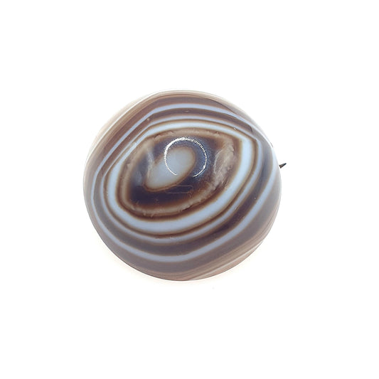 Antique Victorian Banded Agate Brooch Striped Quartz Brown and White Large Cabochon Unisex Jewelry Womens Ladies Jewellery