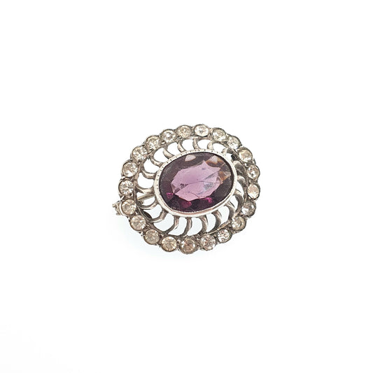 Antique Victorian Solid Silver Paste Brooch Amethyst & Diamond Tone Cluster Oval Cut 1800s Genuine Vintage Fine Womens Jewelry Jewellery