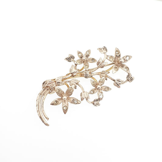 Old Vintage Solid Silver Flower Filigree Brooch Scandinavian Norwegian Norway 830S Large Big Spray Handmade Womens Jewelry Jewellery