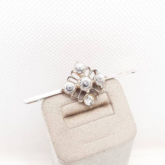 Antique Solid Silver Diamond Paste Brooch Art Deco Cross Cruciform Sparkly Bar Pin 1920s Foiled Fine Estate Vintage Womens Jewellery Jewelry