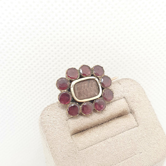 Antique 9k 9ct Gold Garnet Brooch Early Victorian Cluster Mourning Locket Pin Foiled Back Gemstones Small Solid 375 Womens Jewellery Jewelry