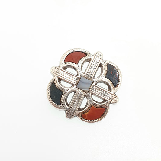 Antique Scottish Bloodstone Sterling Silver Brooch Victorian Jasper Lace Agate Cruciform Cross Solid Vintage Celtic Womens Jewelry Jewellery