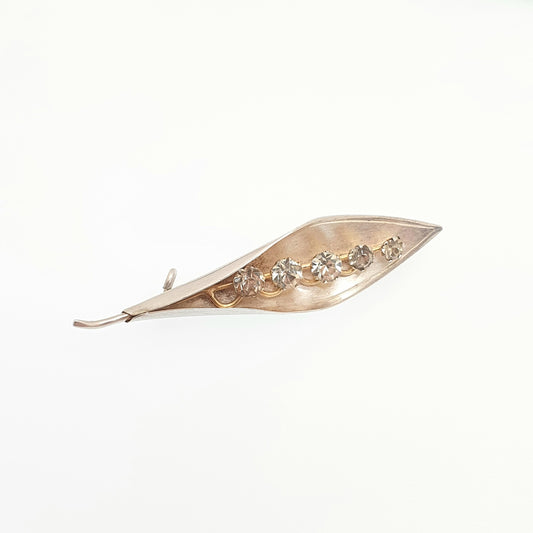 Antique Sterling Silver Leaf Brooch Diamond Paste 1921 Hallmarked Art Deco Sparkly Leaves Genuine Solid 925 Jewellery Ladies Womens Jewelry