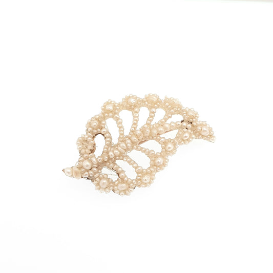Antique Seed Pearl 9ct Gold Brooch Leaf Early Victorian Georgian 9k 375 Mother of Pearl Natural Pearls Woven Handmade Jewellery Jewelry