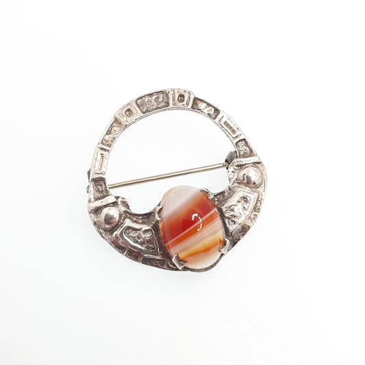 Old Vintage ROBERT ALLISON Sterling Silver Agate Brooch 1957 Hallmark Scottish Celtic Gemstone Gaelic Solid 925 Jewelry Jewellery
