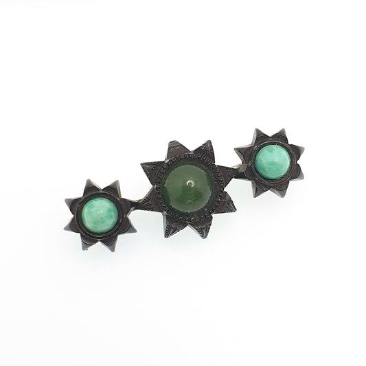 Antique Whitby Jet Star Brooch Nephrite New Zealand Jade & Peking Glass Finely Carved Mourning Stars Jewelry Jewellery Womens Vintage
