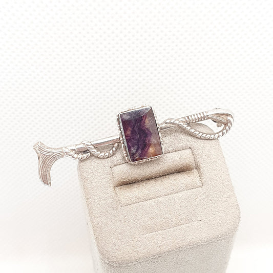 Antique Sterling Silver Blue John Brooch Riding Crop Cane Horse Horses Equestrian Fluorite Bleu Jaune Rare Gemstone Jewelry Jewellery Retro
