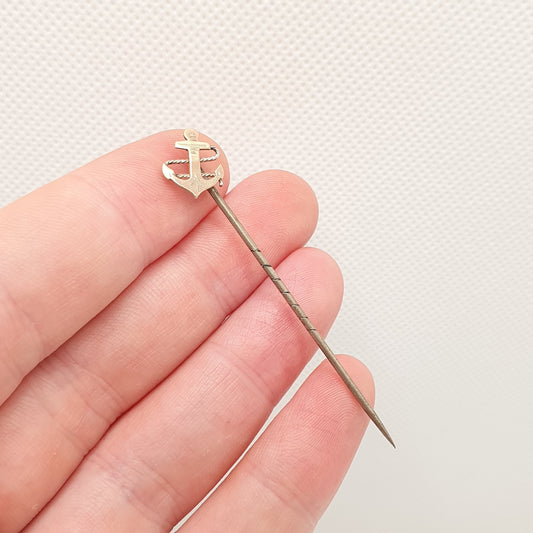 Antique Solid Silver Anchor Stick Pin 9ct Rose Gold Front Victorian Rope Hope Sailing Boat Lucky Good Luck Lapel Jacket Mens Gents Gentleman