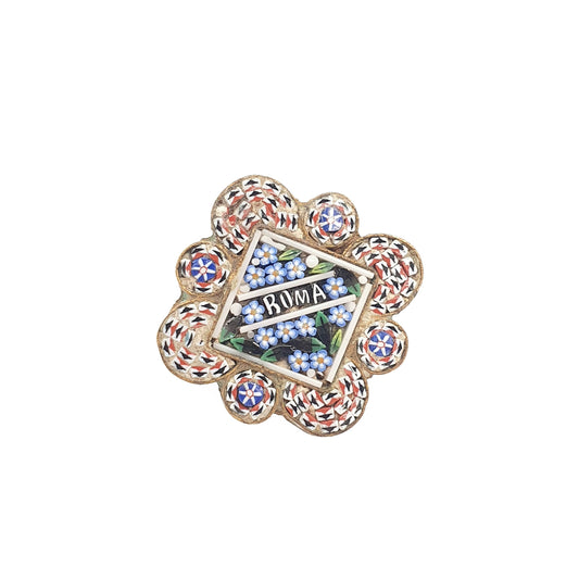 Antique Micro Mosaic Brooch Pin Micromosaic Rome Roma Victorian Millefiori Vintage Gold Gilt Italian Italy Fine Handmade Jewelry Jewellery
