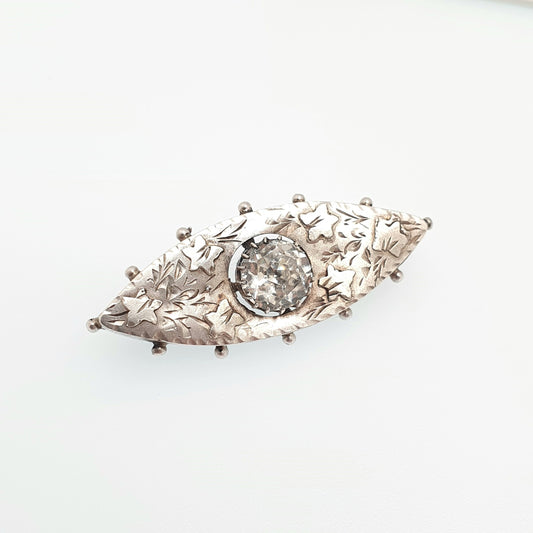 Antique Victorian Sterling Silver Paste Sweetheart Brooch Eye Ellipse 1880 Hallmark Chester Large Old Cut Diamond Paste Vintage Jewelry