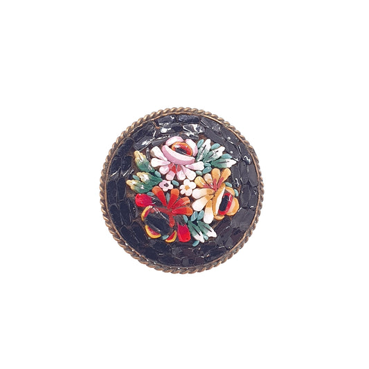 Antique Micromosaic Brooch Pin Black Tiles Micro Mosaic Italian Flower Tiles Pattern Handmade Women Gold Tone Jewelry Jewellery