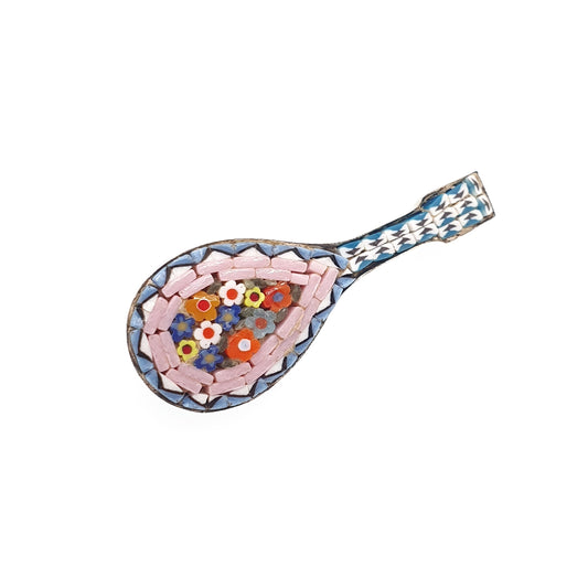 Old Vintage Micromosaic Brooch Pin Lute Mandolin Shape Micro Mosaic Instrument Italian Flower Pattern Handmade Womens Jewelry Jewellery