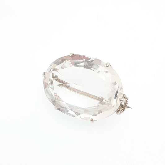 Antique Solid Silver Rock Crystal Brooch Art Deco White Quartz Large Oval Cut Gemstone Clear Vintage Big Womens Jewelry Jewellery