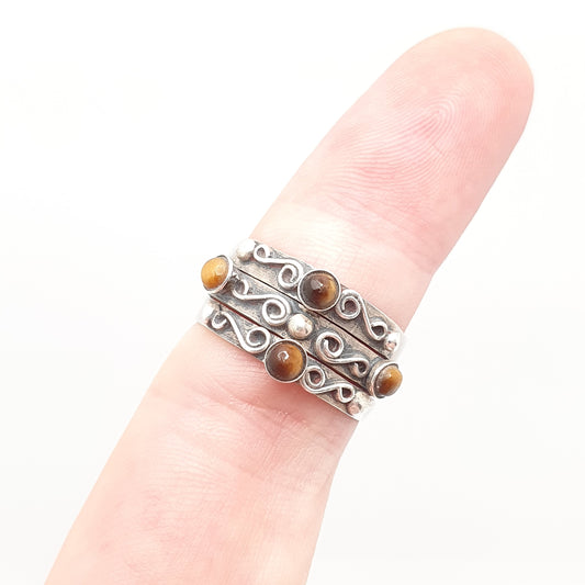 Vintage Mexican Sterling Silver Tiger Eye Ring Mexican Taxco Stacker Band Solid 925 Stacking Gemstone Genuine Womens Jewelry Retro Jewellery