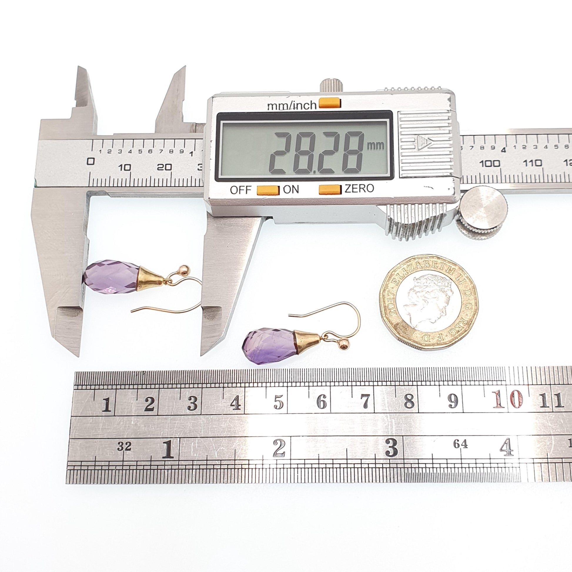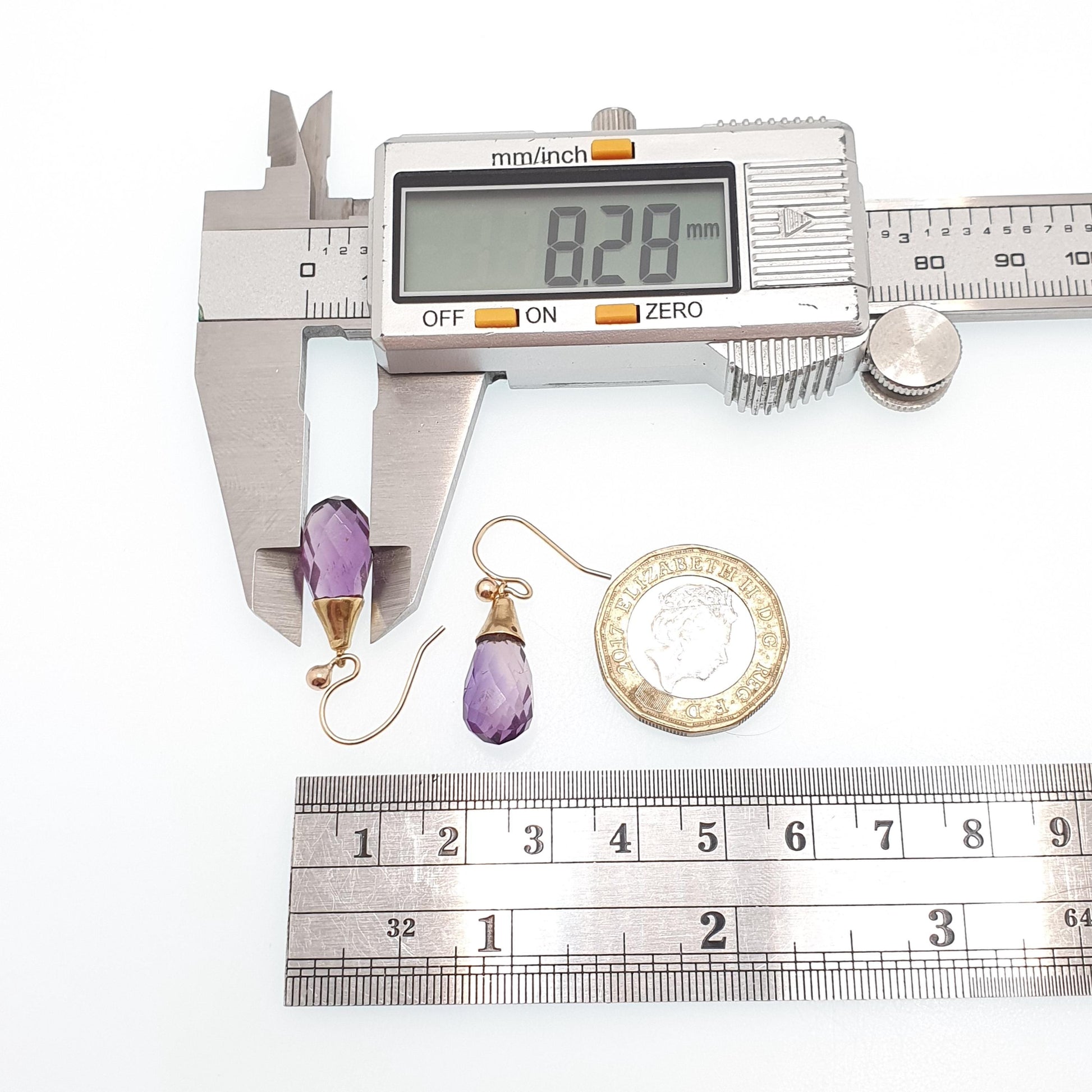 Antique 14k 14kt Gold Amethyst Hook Earrings Art Deco Natural Gemstone Faceted Pear Vintage 9ct Gold Hooks Jewelry