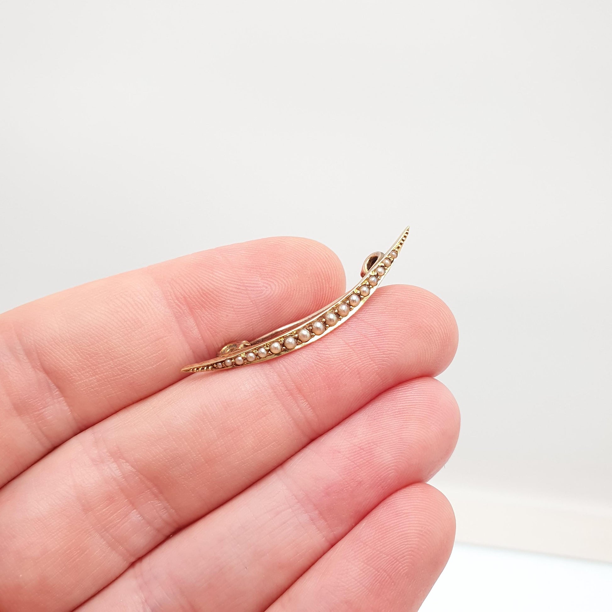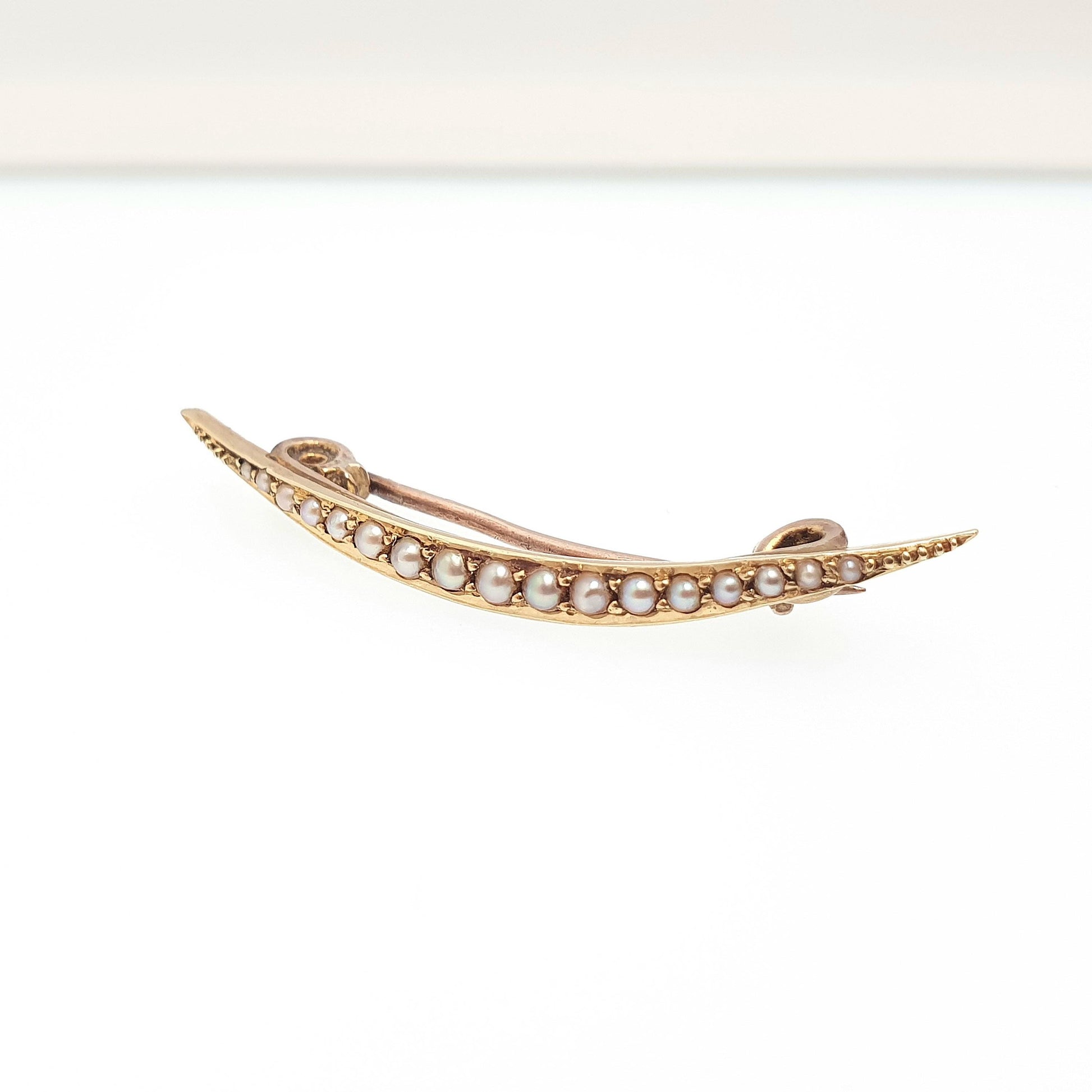 Antique 14k 14kt Gold Crescent Moon Brooch Seed Pearl Victorian Solid 9kt 9k Pin Celestial Womens Jewelry Jewellery