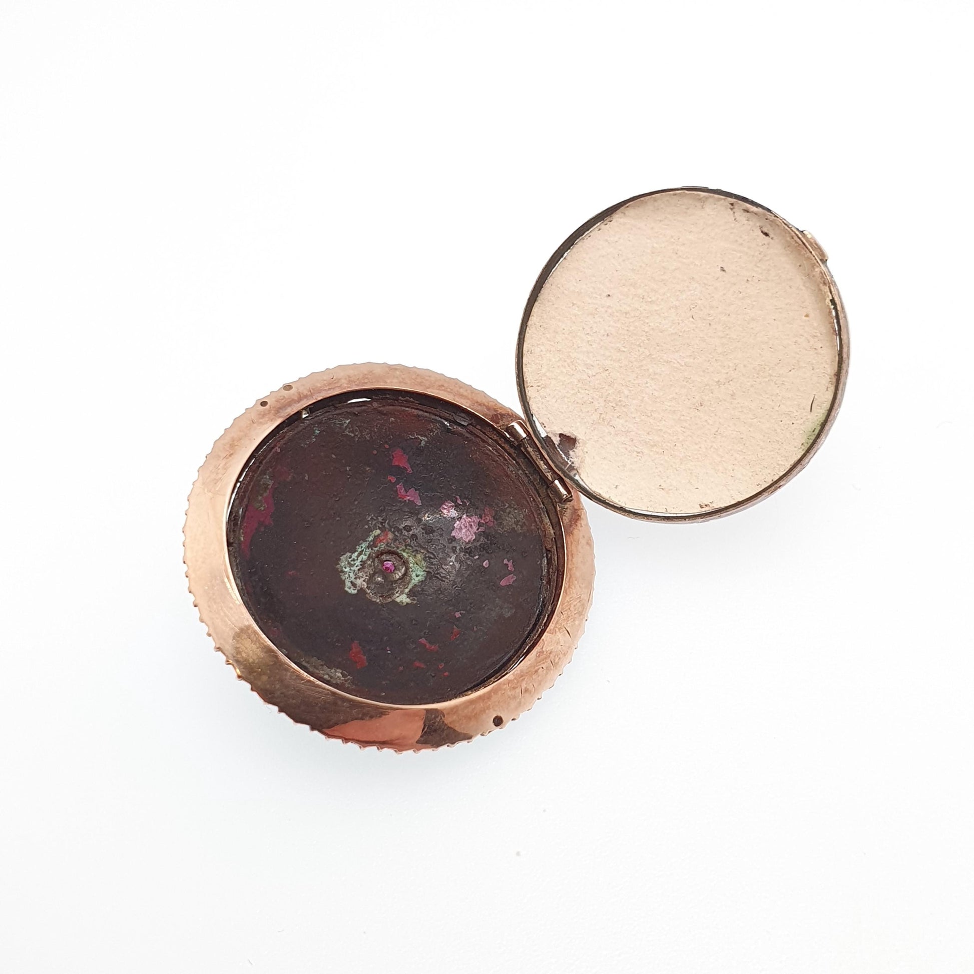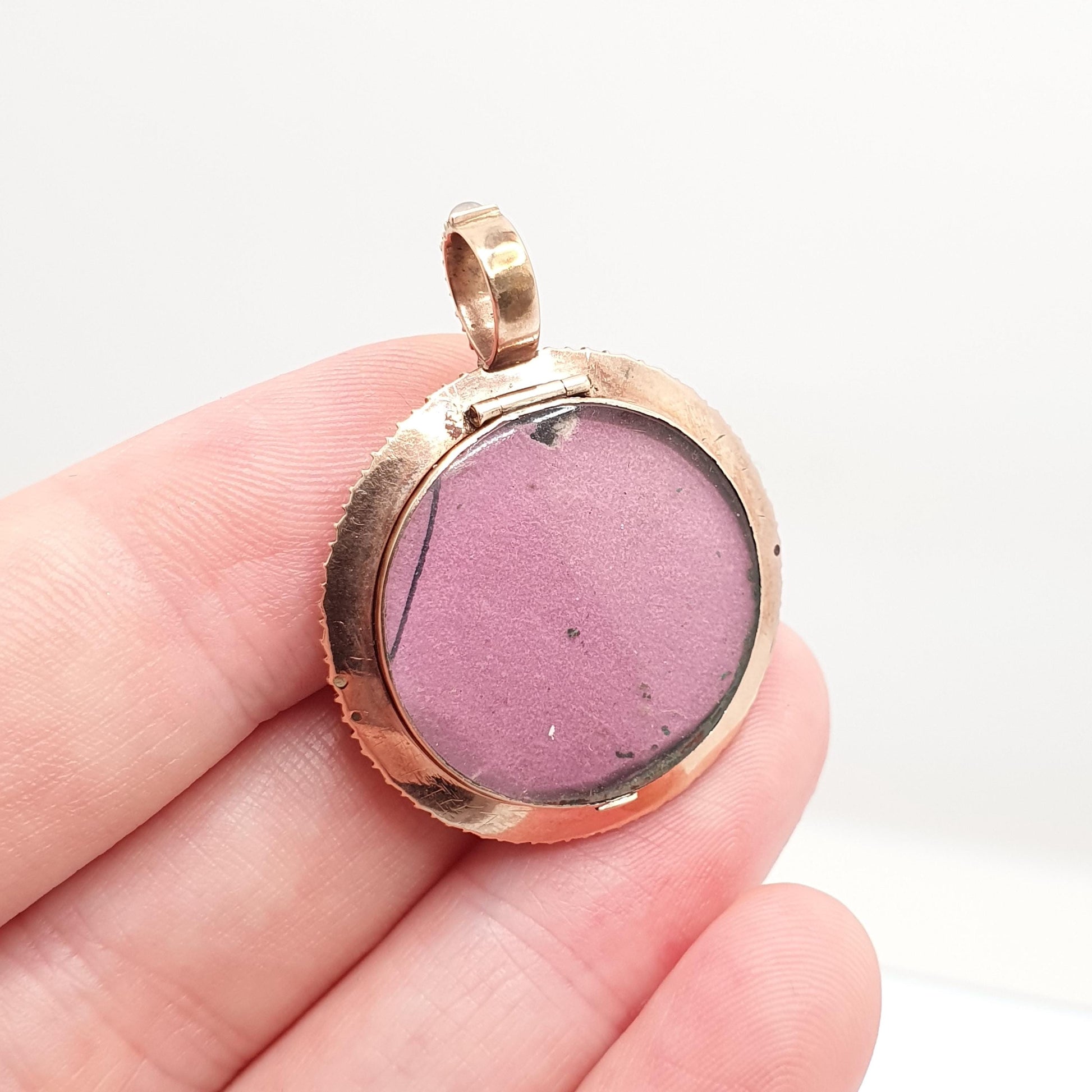 Antique 14k 14kt Gold Ruby Locket Seed Pearl Blue Enamel Victorian Solid Rose Gold 585 Round Circle Vintage Jewelry Jewellery