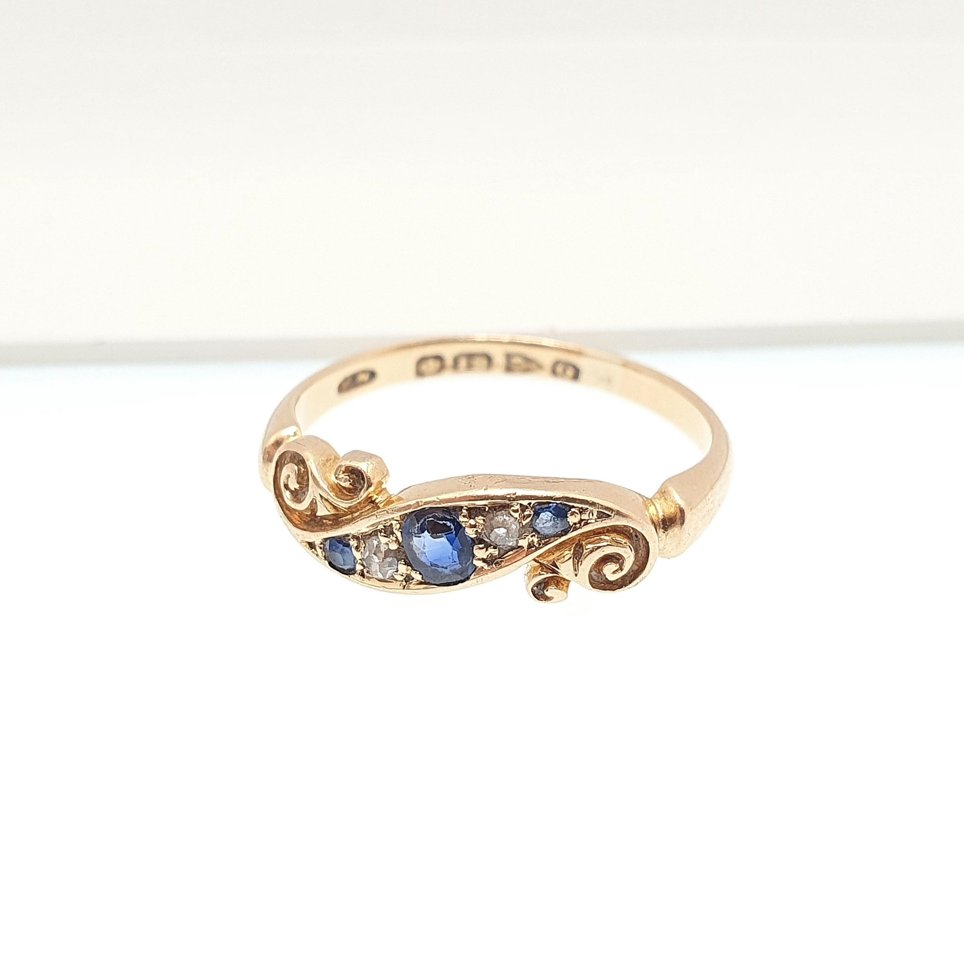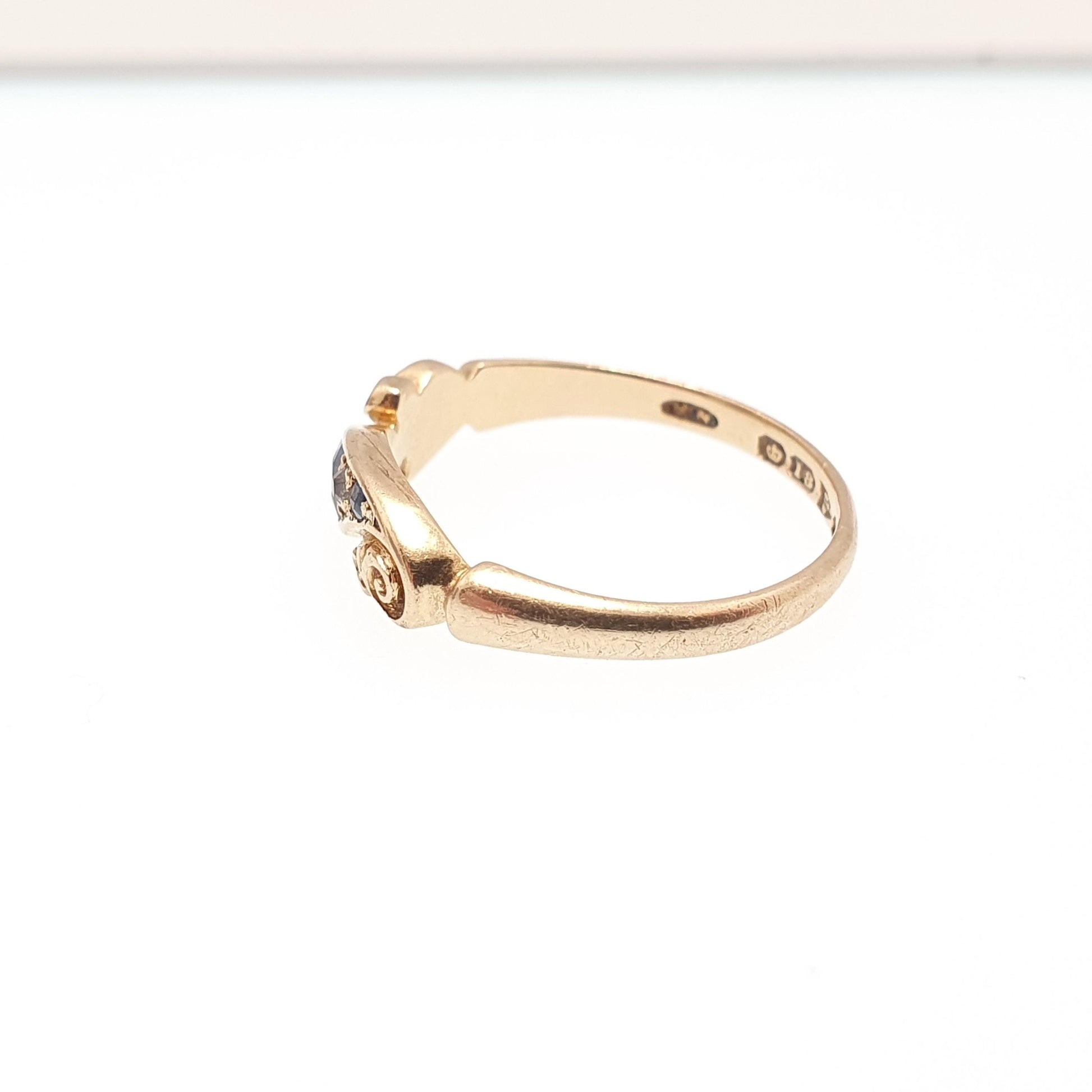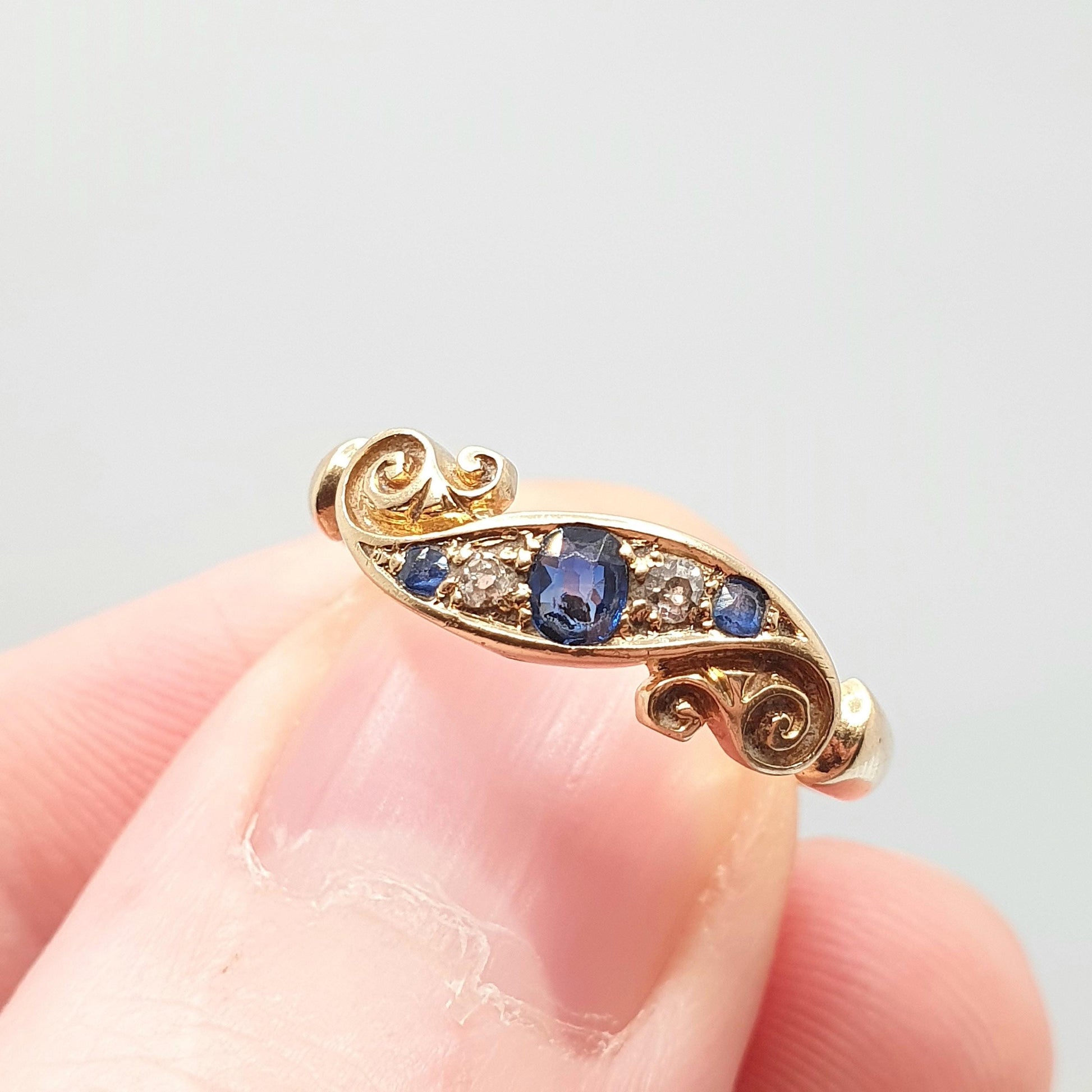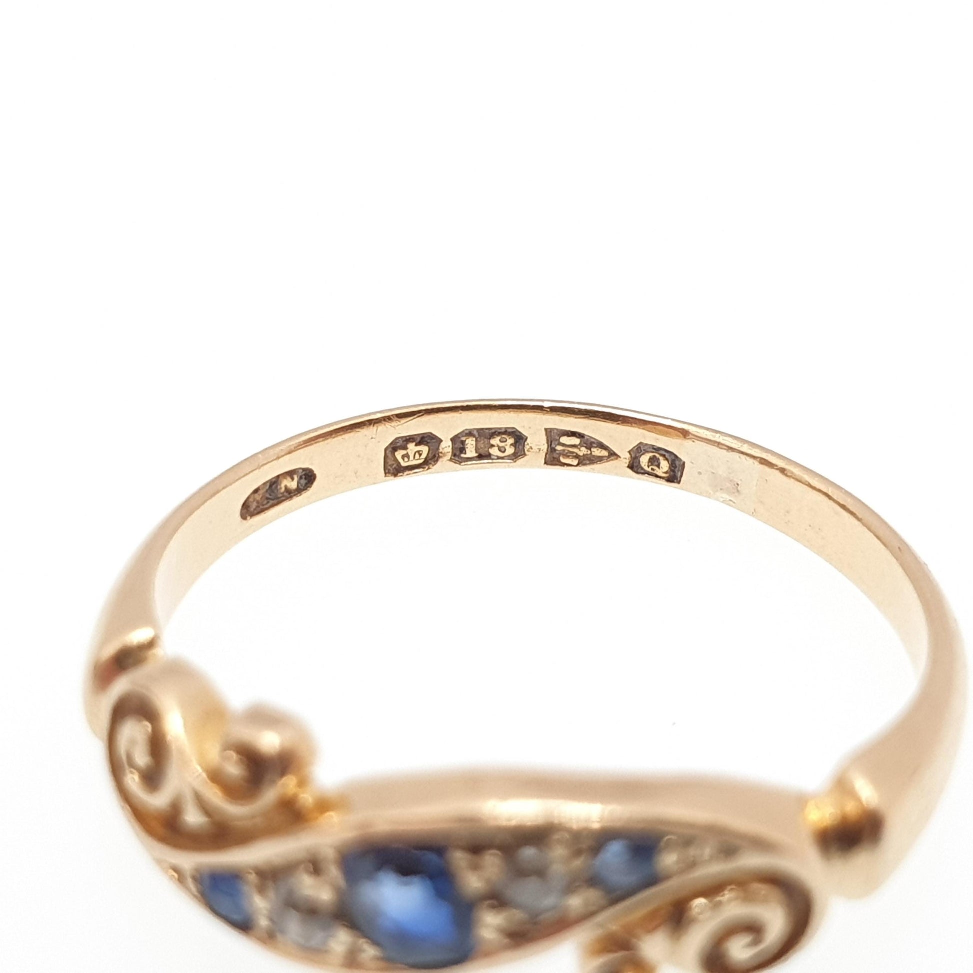 Antique 18ct Gold Sapphire & Diamond Ring Victorian Solid 18k 750 1899 Hallmark Five Natural Gemstones Vintage Jewelry Jewellery