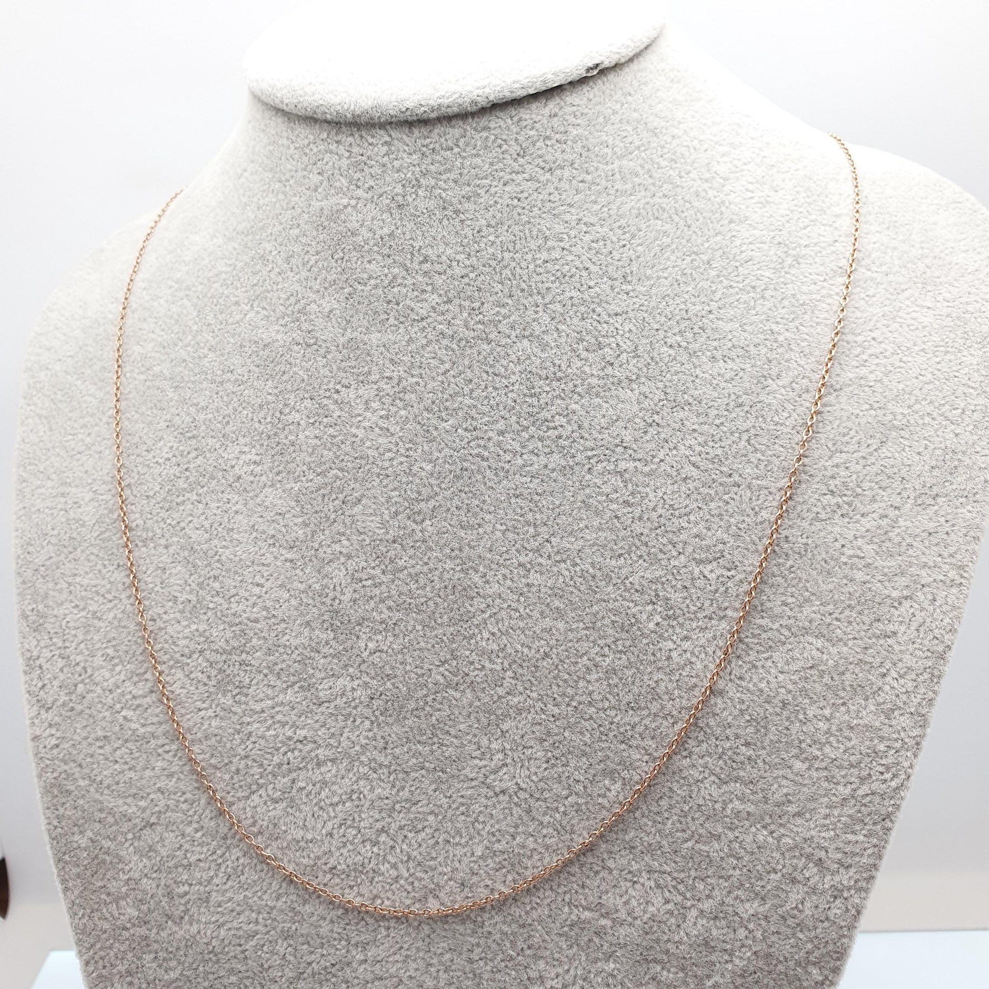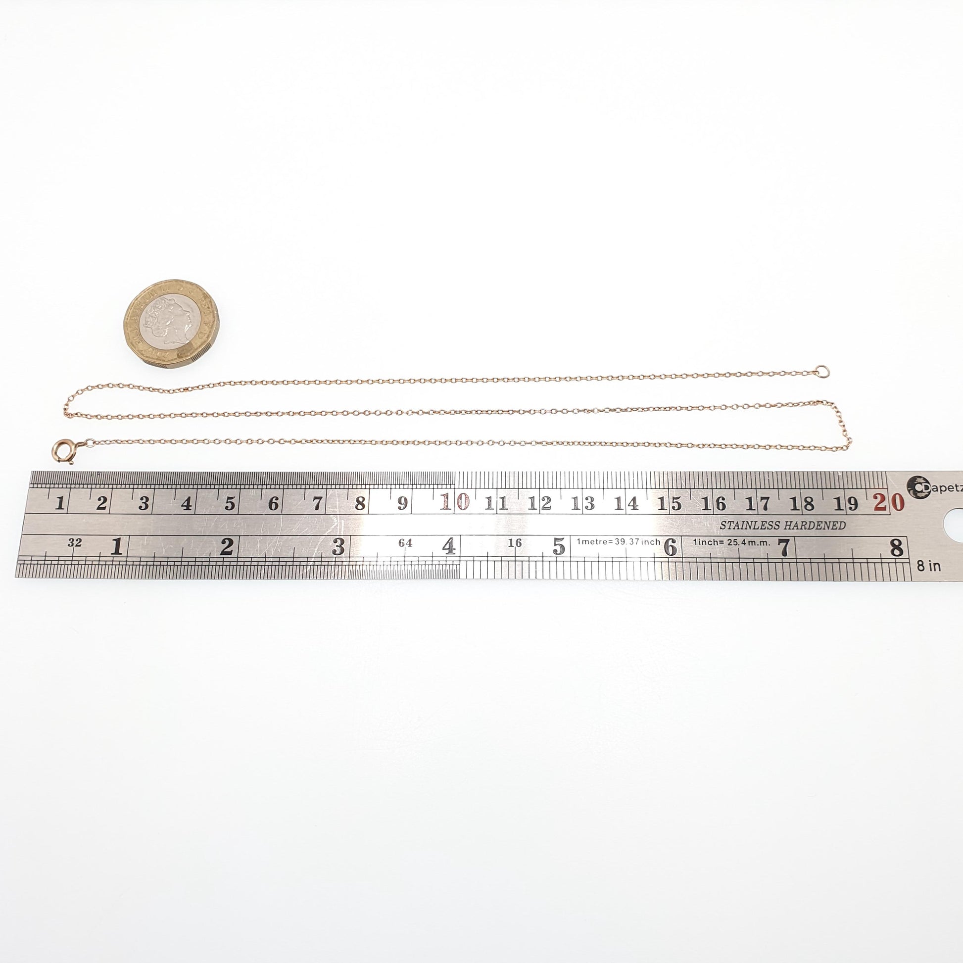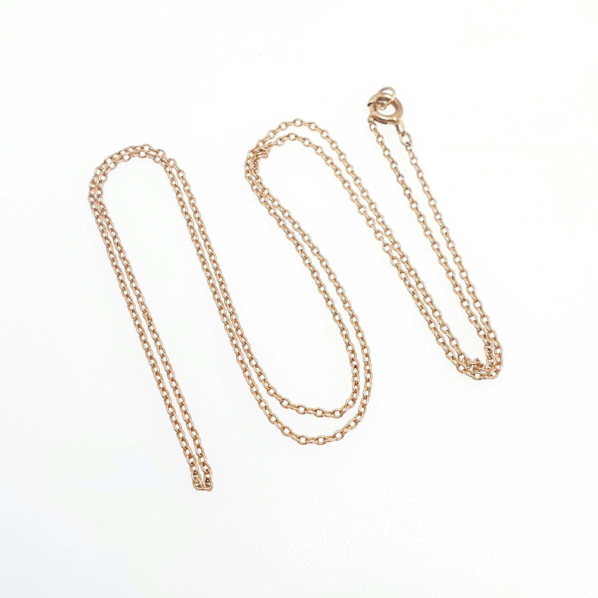 DESCRIPTION: A genuine antique Victorian solid 9ct 375 rose gold chain necklace, with oval cable links. It measures approx. 57cm or 22.4" in length when unfastened, 1.5mm wide and weighs approx. 2.66g. The clasp has remnants of a gold stamp, but it has worn and distorted with age. The chain and clasp both test for solid 9ct gold.