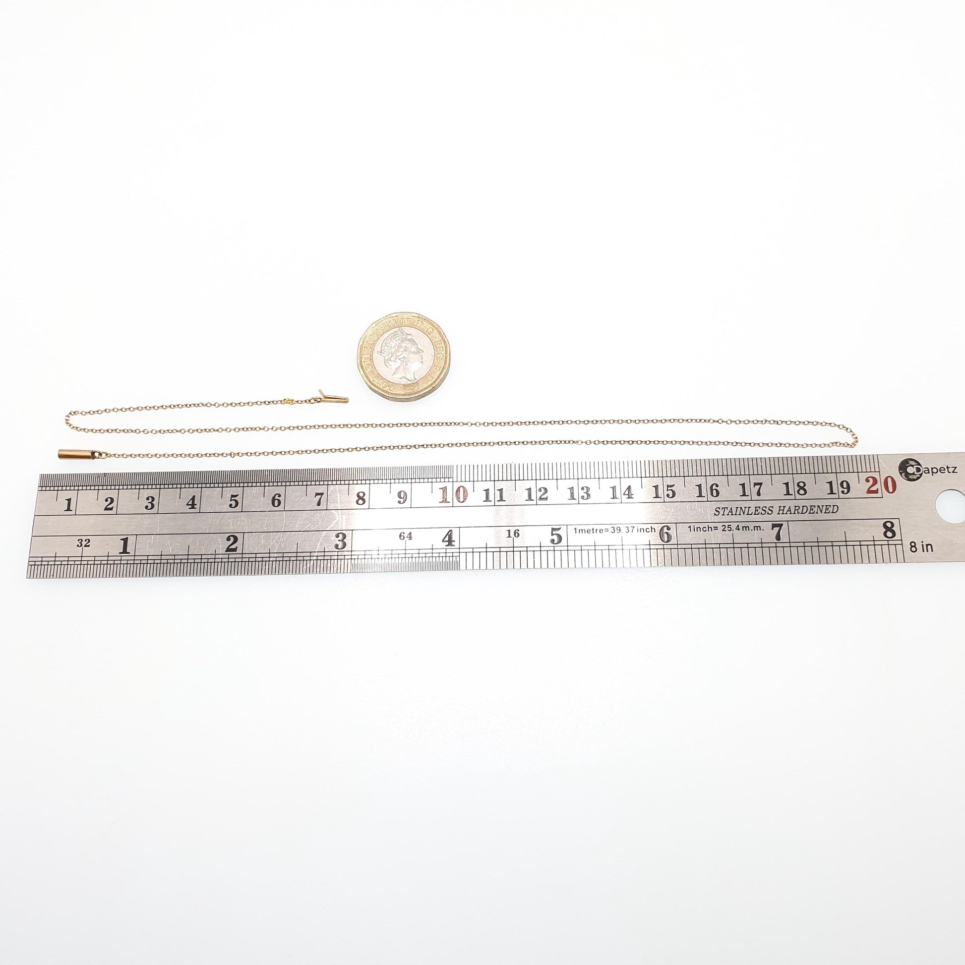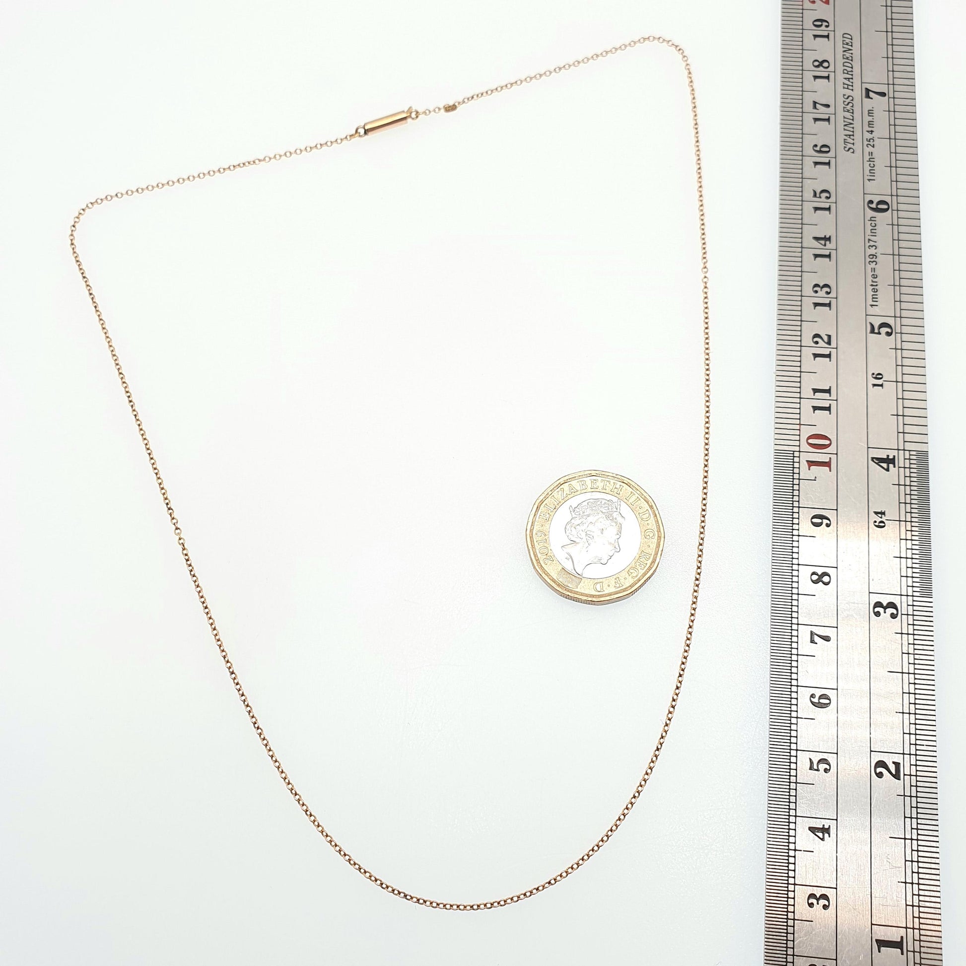 Antique 9ct 9k Gold Chain Necklace Victorian Cable Link Solid 9kt 45cm 17.7" 1.57g Trace Fine Yellow Genuine Vintage Womens Jewelry