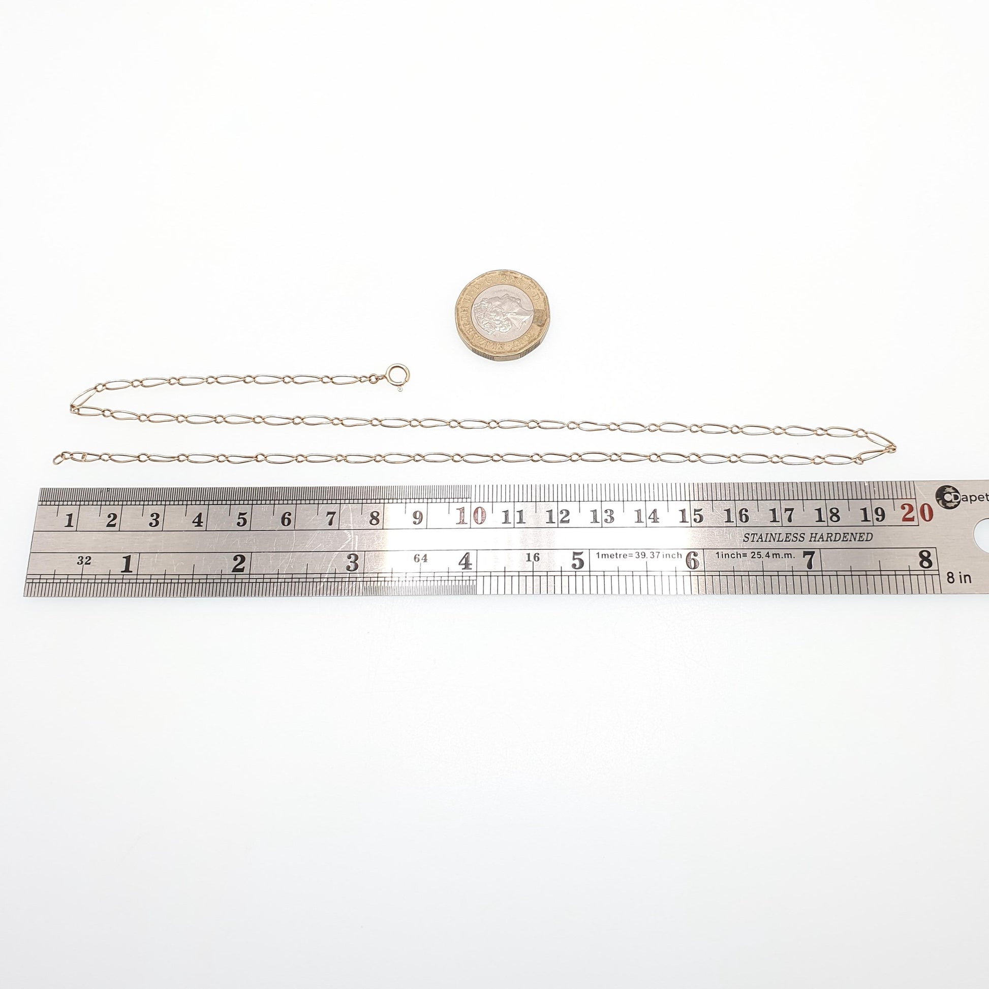 Antique 9ct 9k Gold Chain Necklace Victorian Figaro Staple Curb Style 47cm 18.5" 3.44g Yellow Solid Vintage Womens Mens Jewelry Jewelry