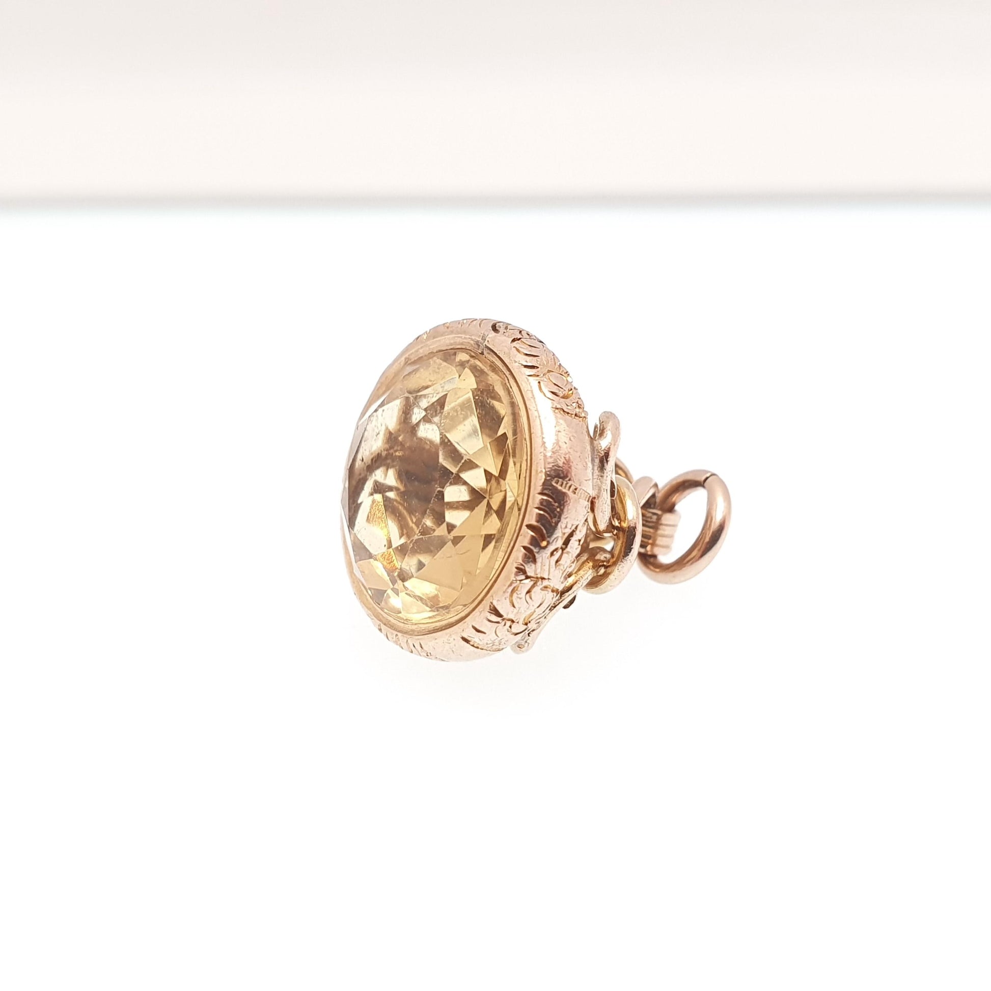 Antique 9ct 9k Gold Citrine Fob Pendant Necklace Victorian Natural Gemstone Albert Orange Quartz Solid 375 Vintage Jewellery Jewelry