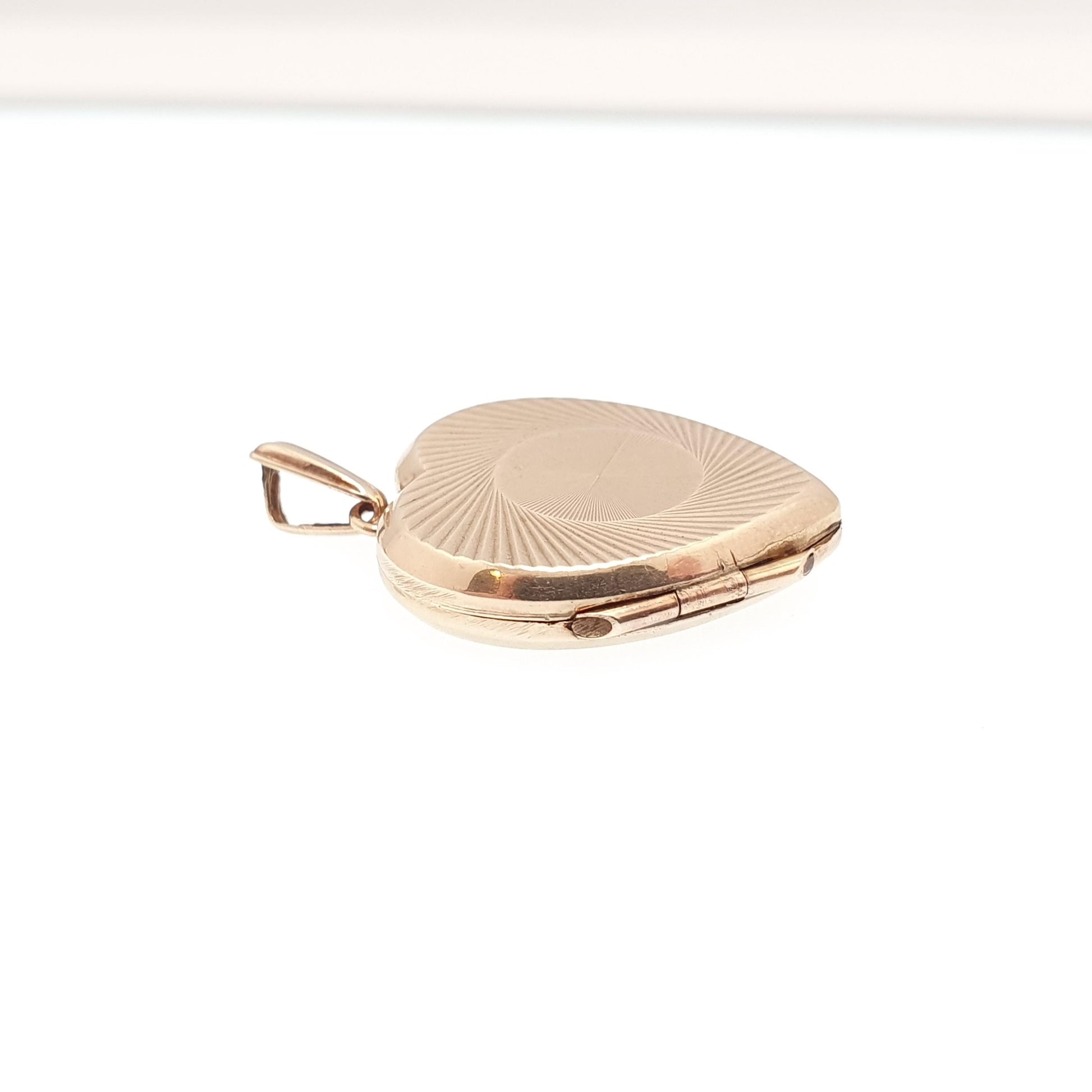 Antique 9ct 9k Gold Heart Locket Gyroscope Art Deco Solid Yellow Gold Back & Front Engraved 1920s Necklace Photo Pendant Jewelry Jewellery