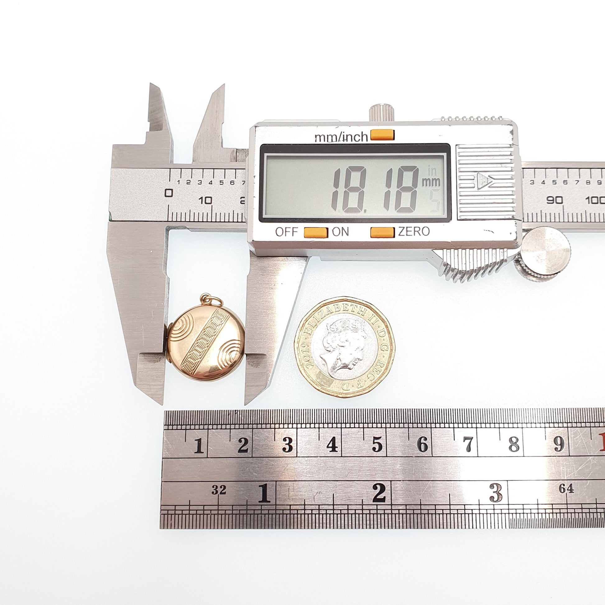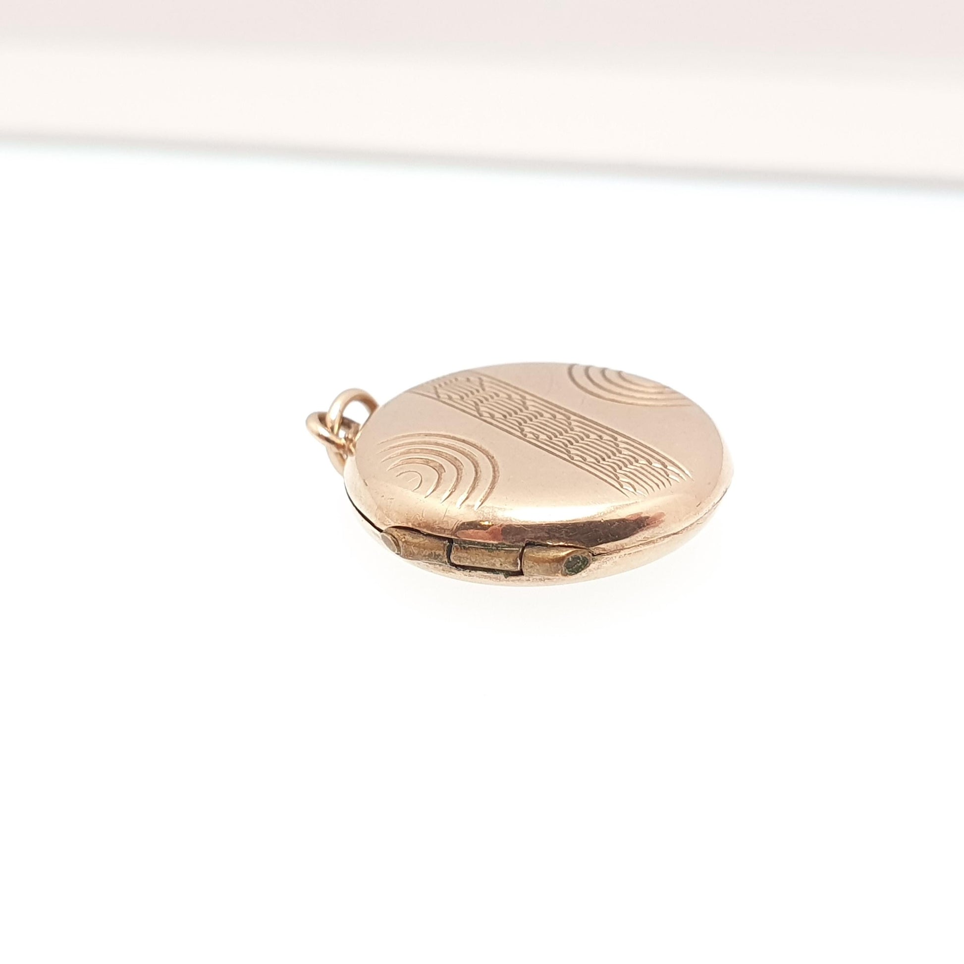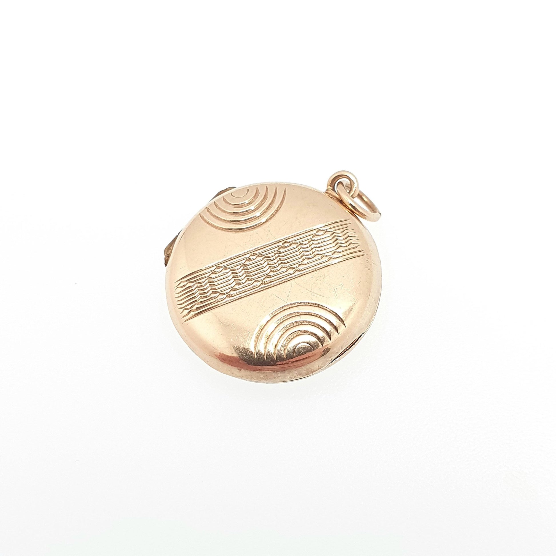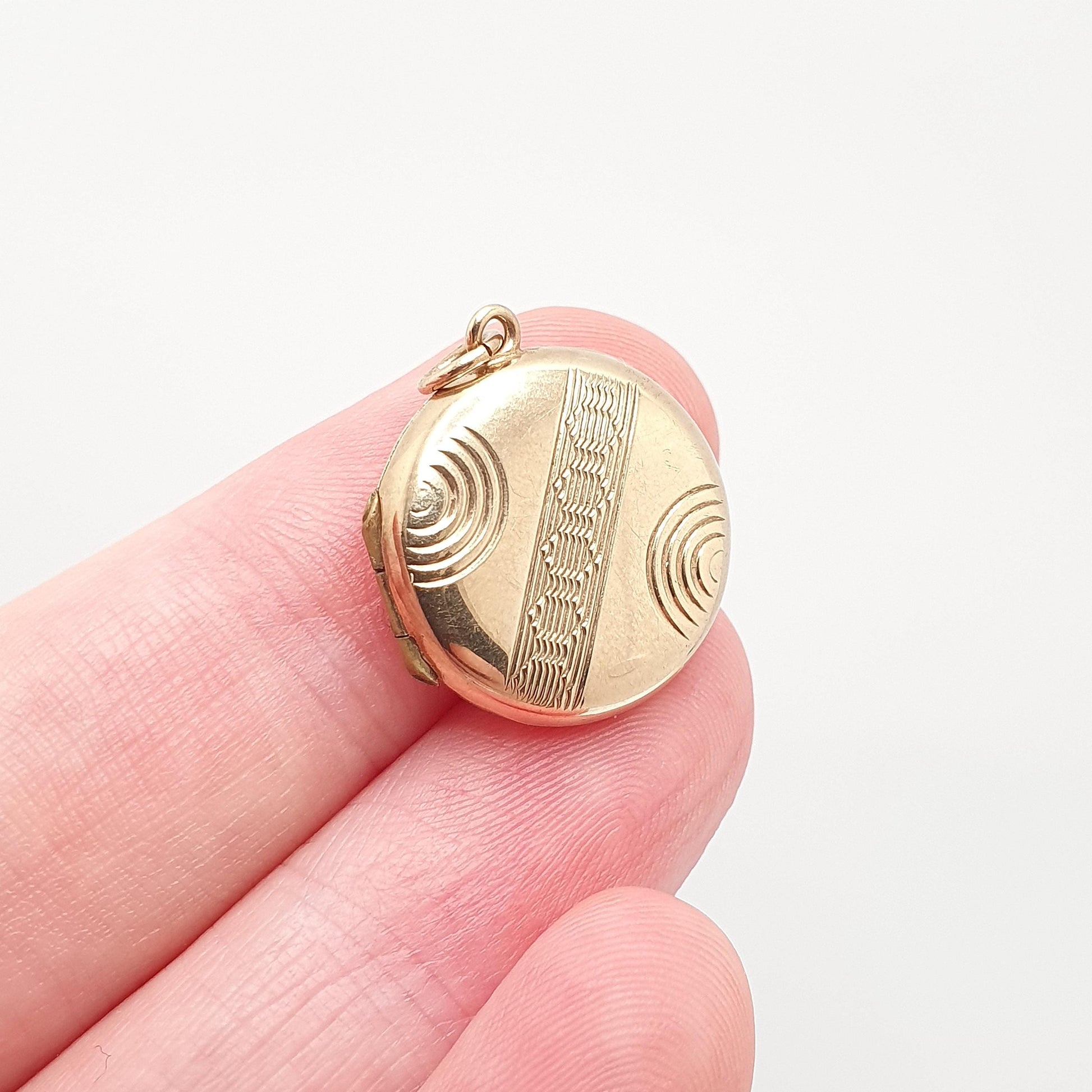 Antique 9ct 9k Gold Locket Pendant Round Art Deco Geometric Pattern Solid 375 Back & Front Small Circle Photo Vintage Necklace