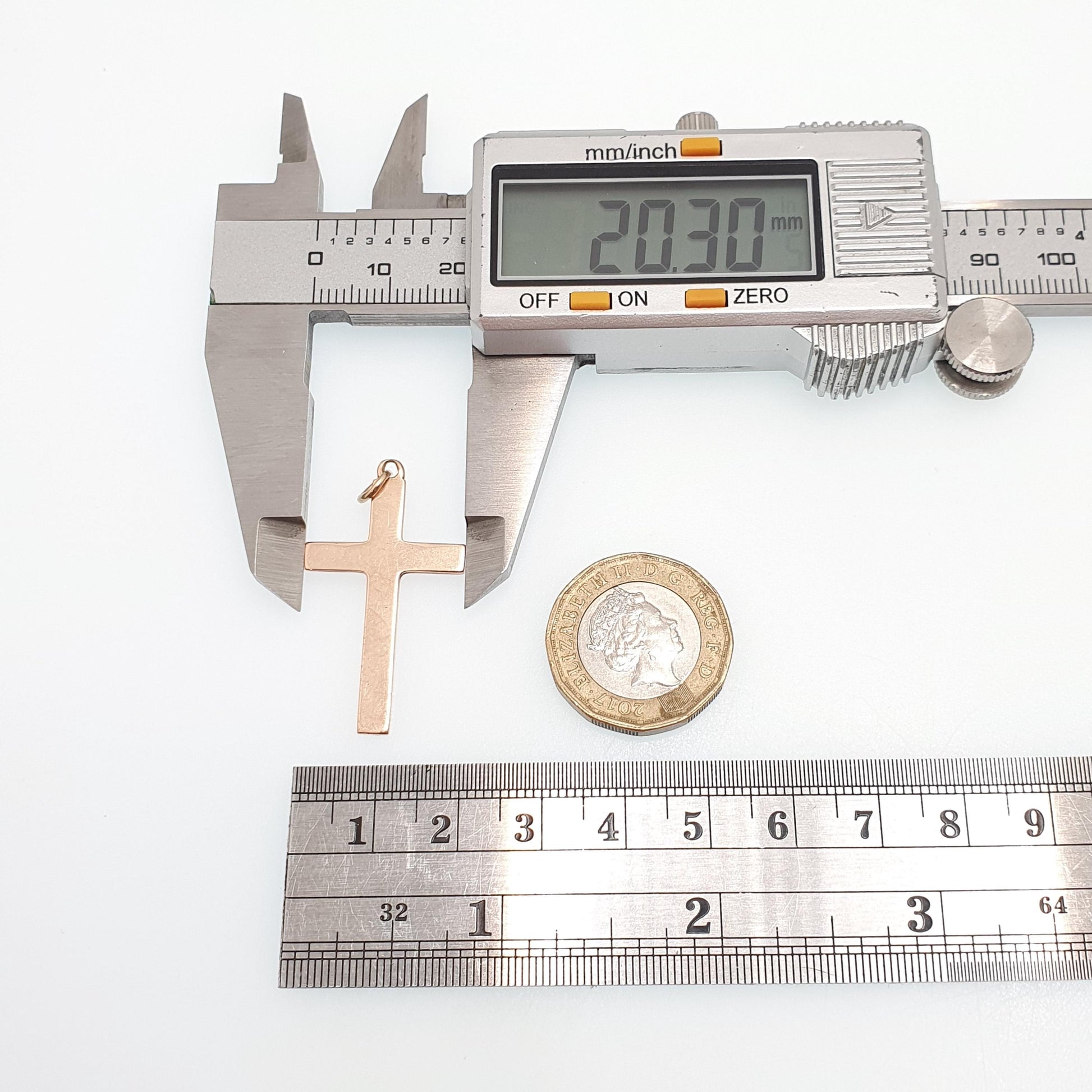Antique 9ct 9k Rose Gold Cross Necklace Crucifix Pendant Plain Smooth 1905 Hallmark Solid 375 Vintage Womens Mens Jewellery Jewelry