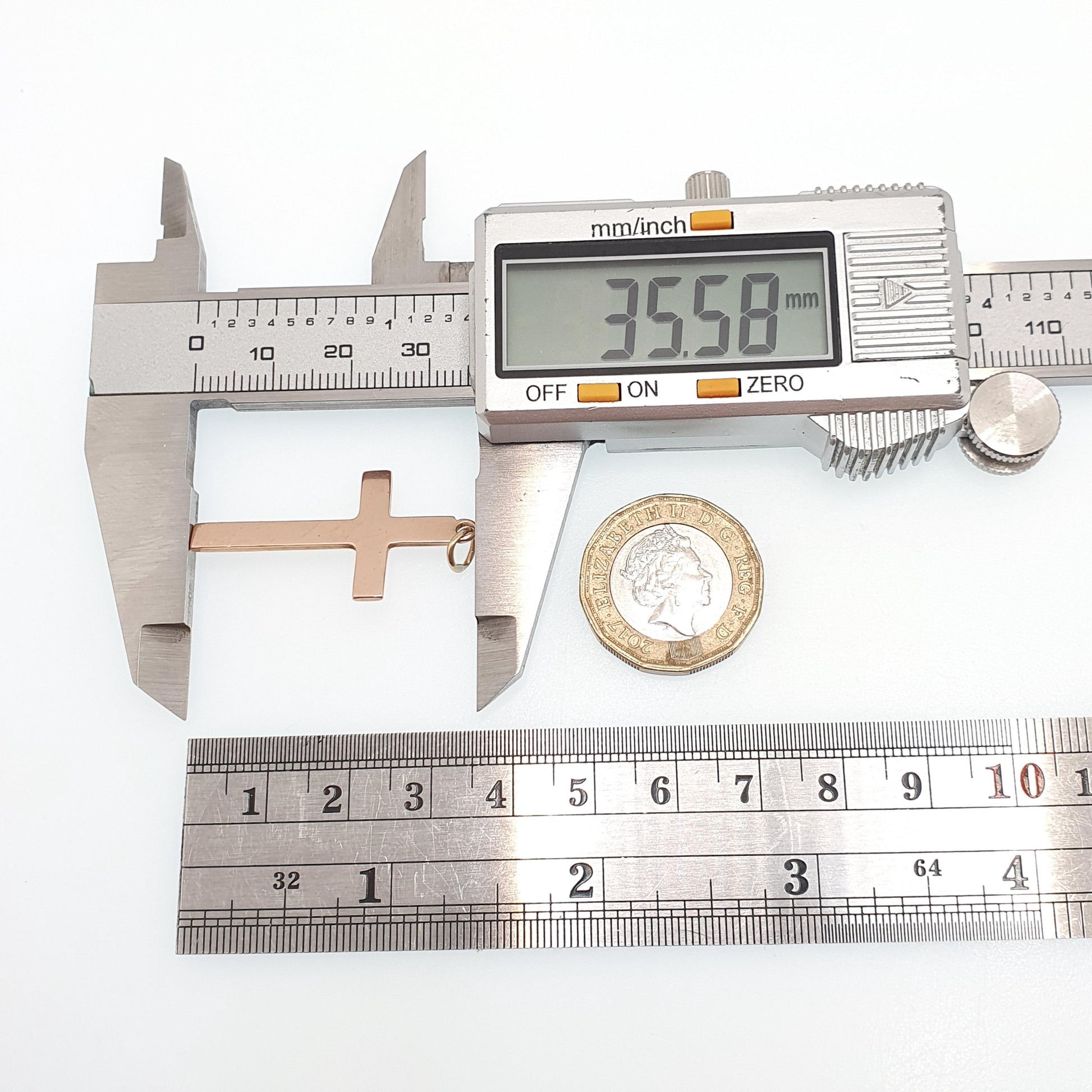 DESCRIPTION: A lovely antique solid 9ct 375 rose gold crucifix pendant, with a plain face. It's hallmarked for 9ct gold, dating to 1905. It has a good solid feel to it, weighing approx. 2.74g and the size dimensions are in the later photos. As to be expected with age and use, there are some scratches on the face, see pictures/video. The rose gold is a light pink in tone (less red/coppery than modern rose gold), consistent with antique rose gold.