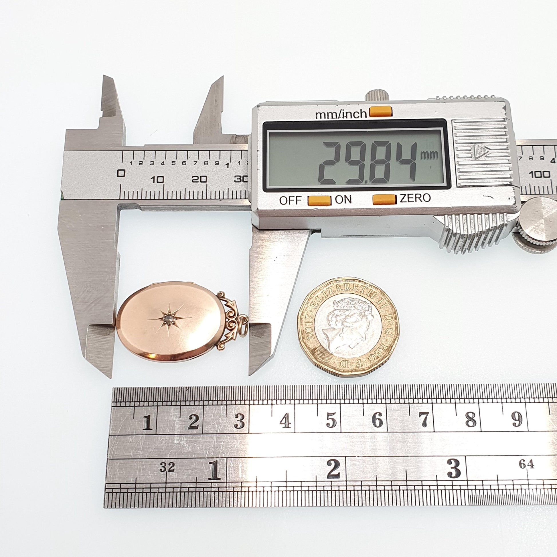 Antique 9ct 9k Rose Gold Diamond Locket Pendant Star Oval Solid 375 Fine Estate Back & Front Necklace Jewelry Womens Jewellery