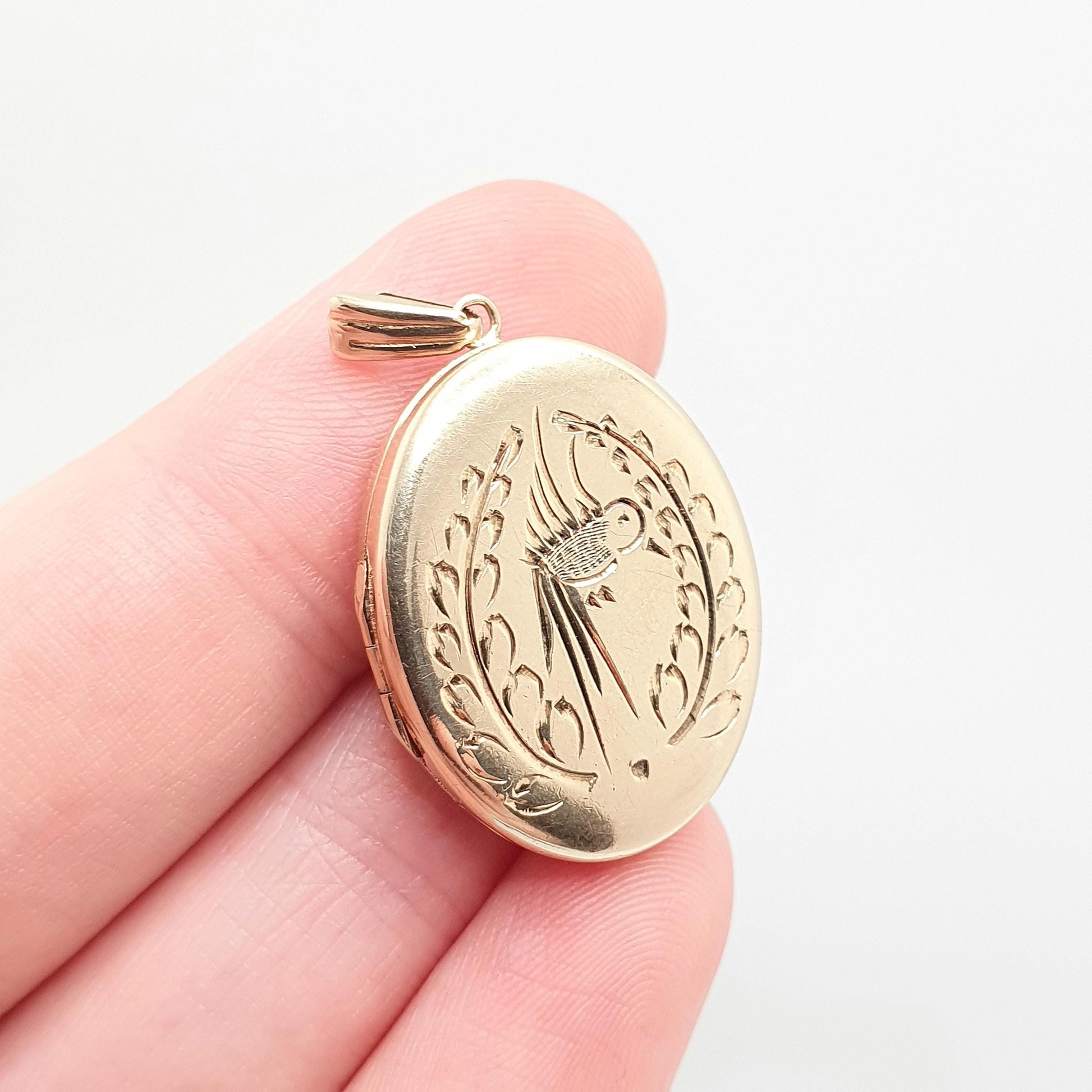 Vintage 9ct Gold Bird Locket Solid 9k 375 All Gold Oval Pendant 1970 Hallmark Gift Necklace Jewelry Womens Jewellery