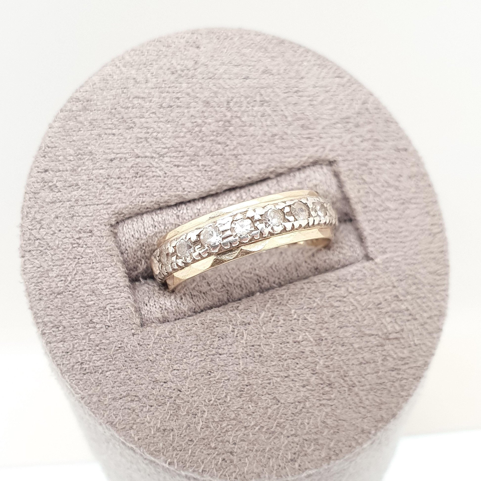 Antique 9ct Gold Eternity Ring Diamond White Spinel Sterling Silver Band Solid 9kt 9k Gold Art Deco Vintage 1920s Womens Jewelry Jewellery