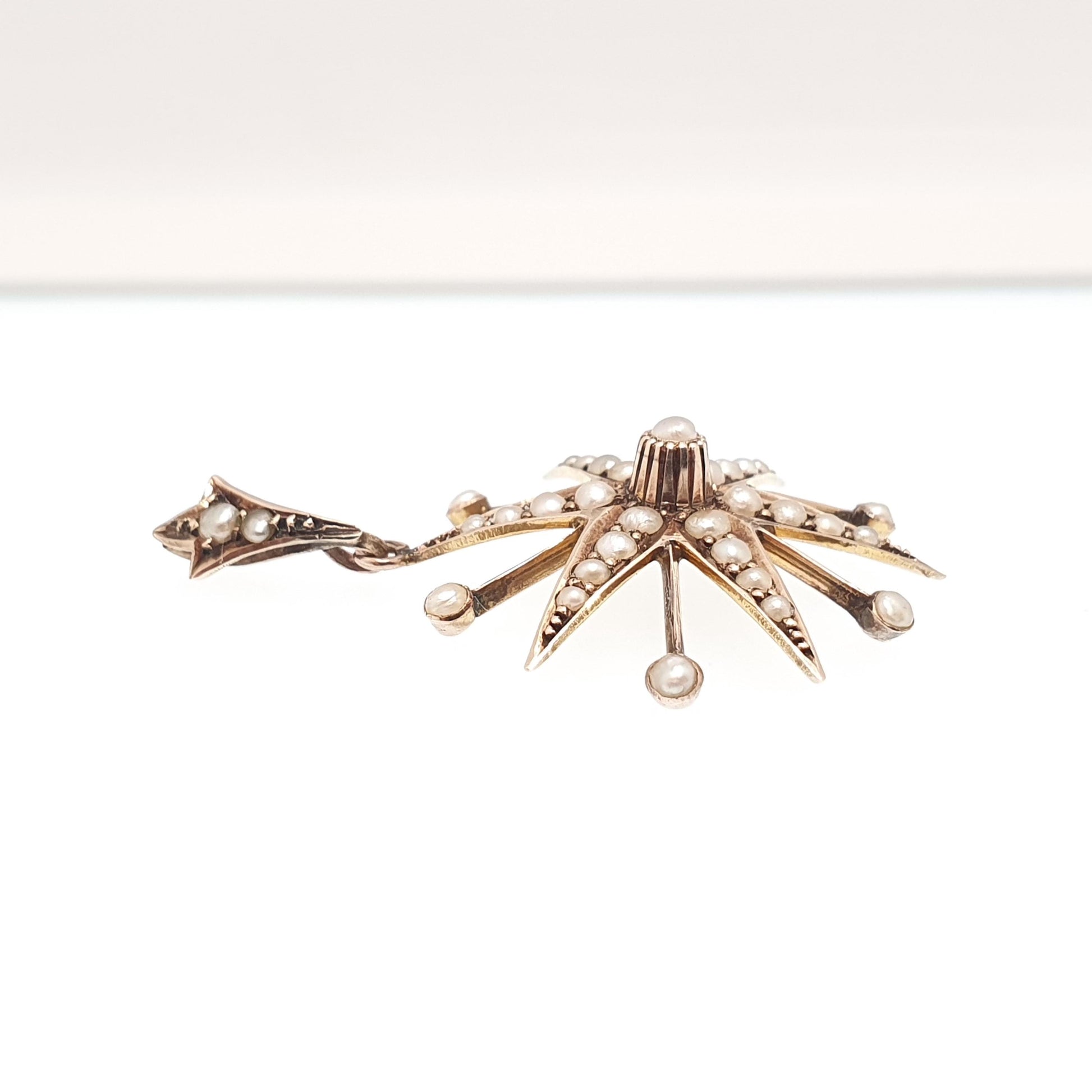 Antique 9ct Gold Star Pendant Seed Pearl Necklace Victorian Solid 9k 9kt 375 Celestial Vintage Jewellery Jewelry
