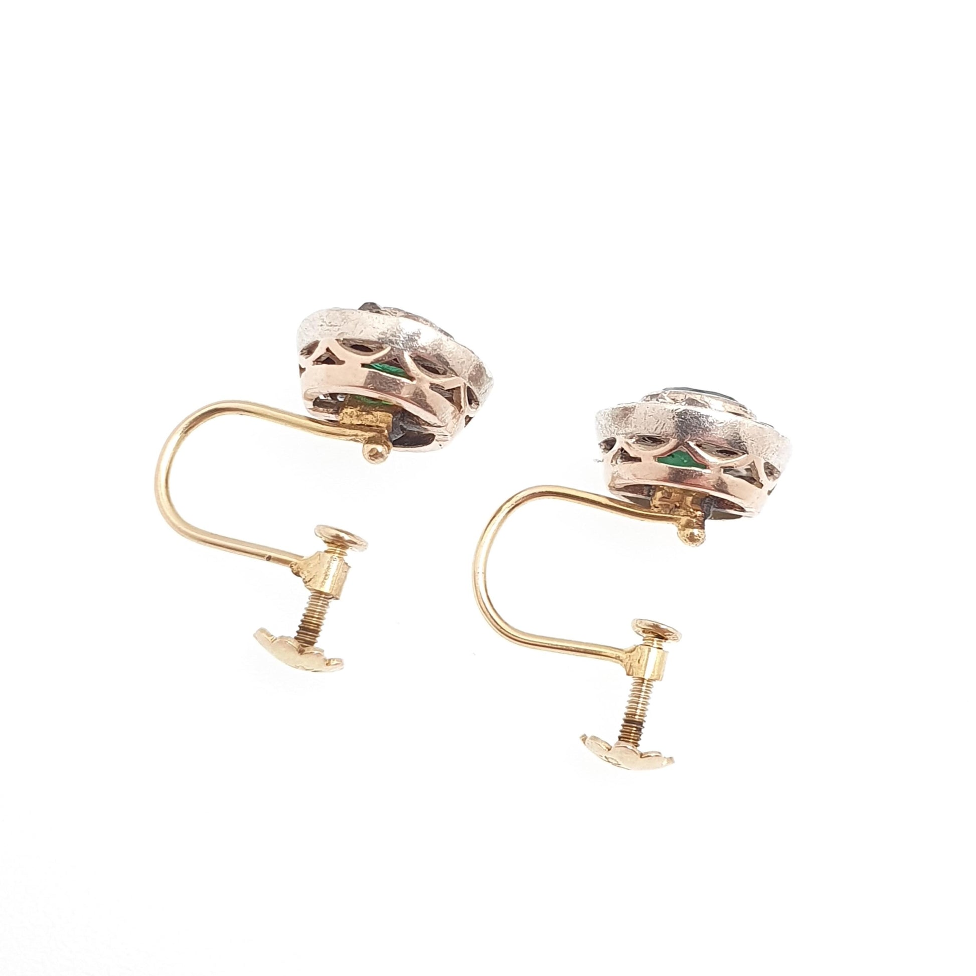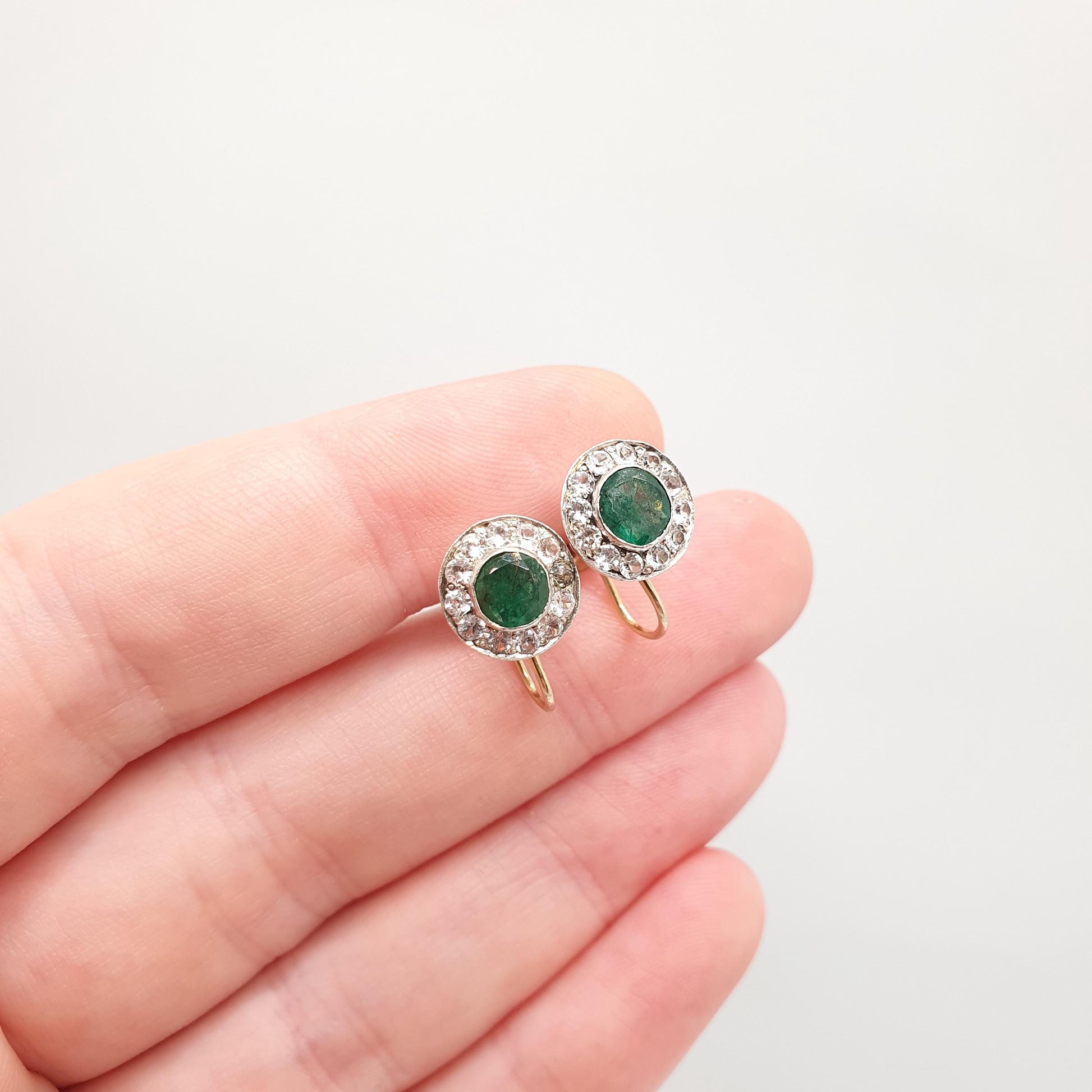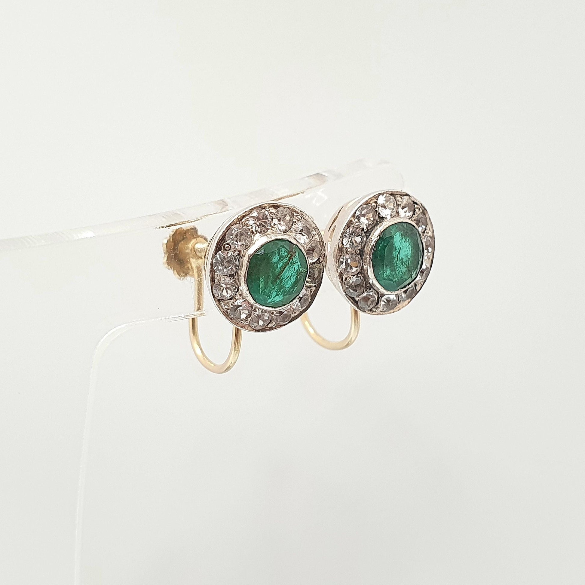 Antique 9k 9ct Gold Emerald Earrings White Sapphire Cluster Halo Solid Silver Set Solid 9kt Vintage Jewellery Jewelry