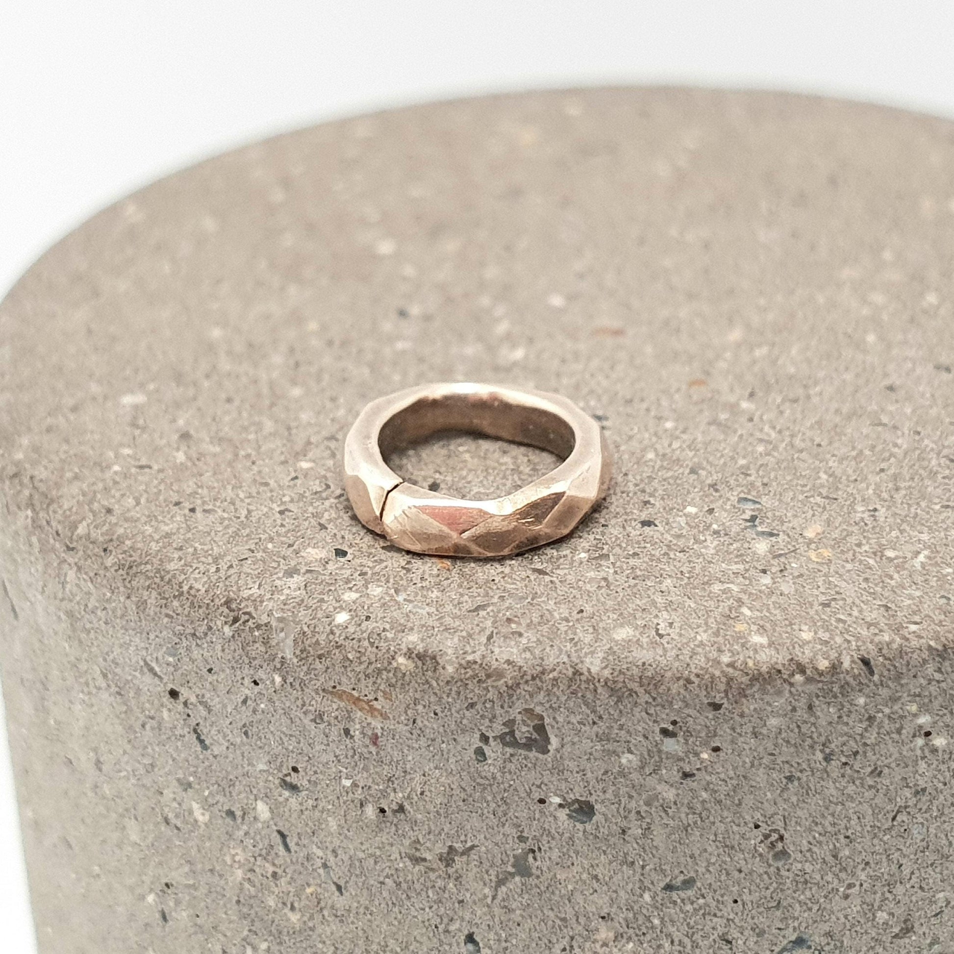 DESCRIPTION: A beautiful solid 9ct gold early Victorian faceted jump ring. As to be expected the item isn't stamped but tests for 9ct gold. It weighs approx. 0.27g and the size dimensions are in the later photos. It has some wear and marks as to be expected with an antique item.