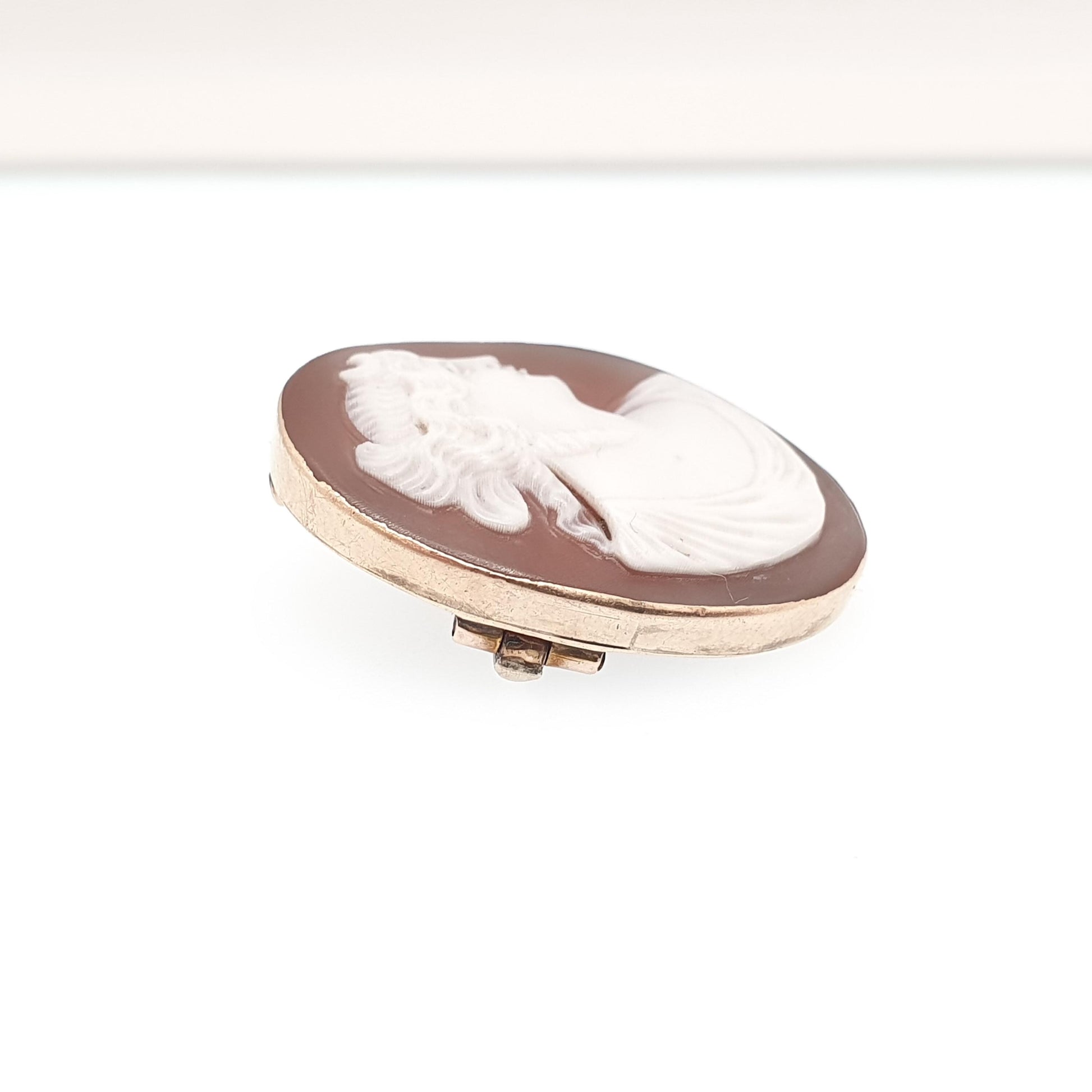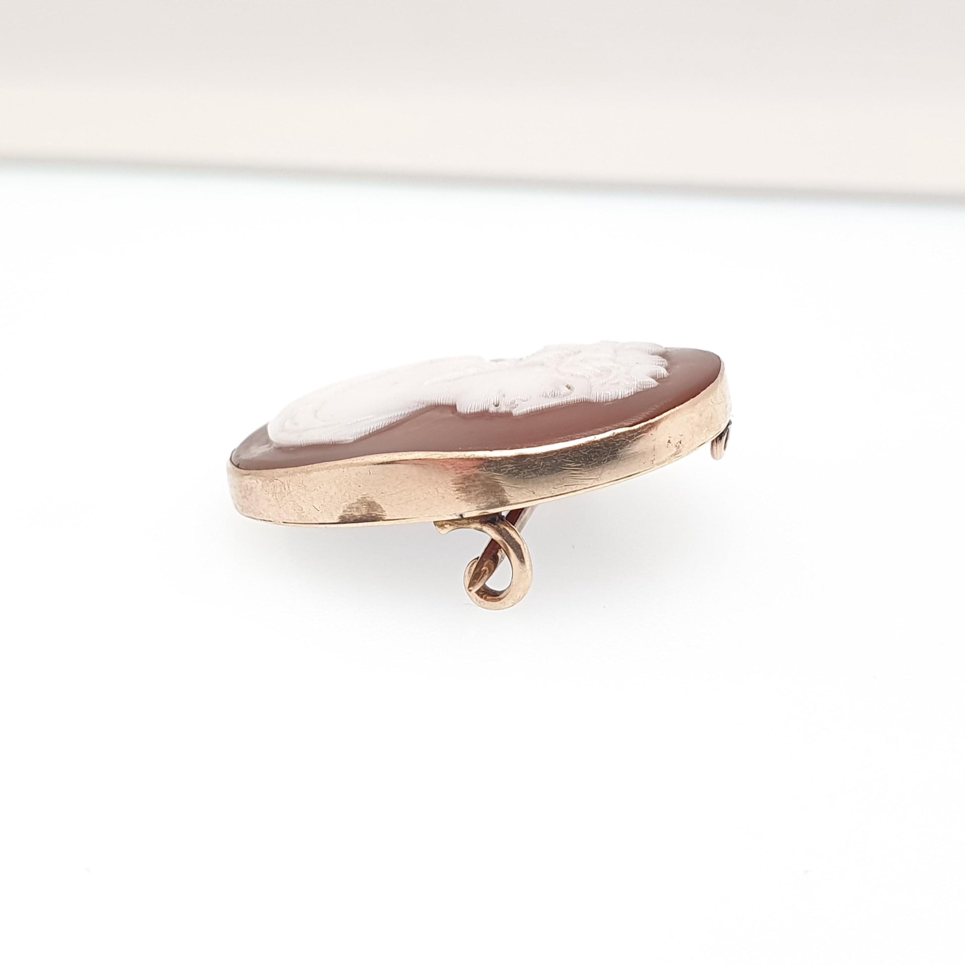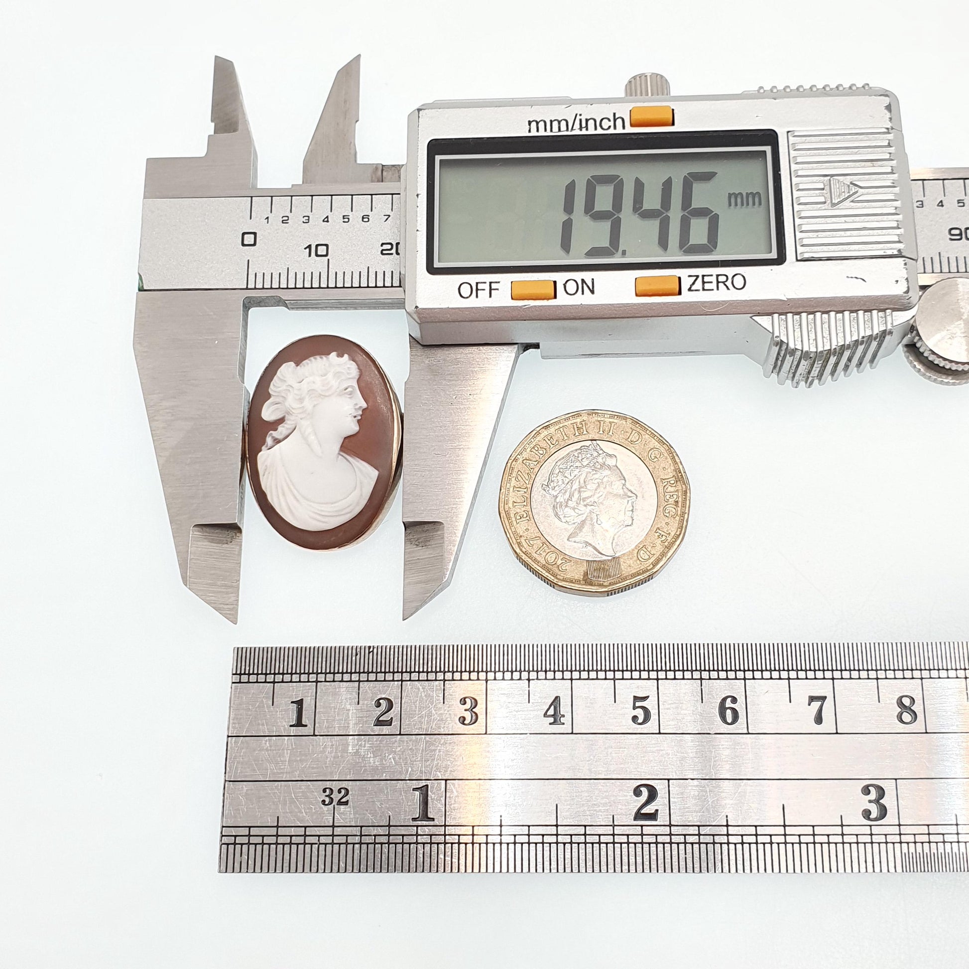 DESCRIPTION: A lovely antique Victorian genuine Selene moon goddess shell cameo brooch, mounted in a solid 9ct 375 gold frame. The cameo itself has good detail and is nicely carved, The item weighs approx. 3.85g and the size dimensions are in the later photos. As to be expected with the items age, it isn't stamped/hallmarked but tests as explained above. It has some dark marks in areas on the gold frame.