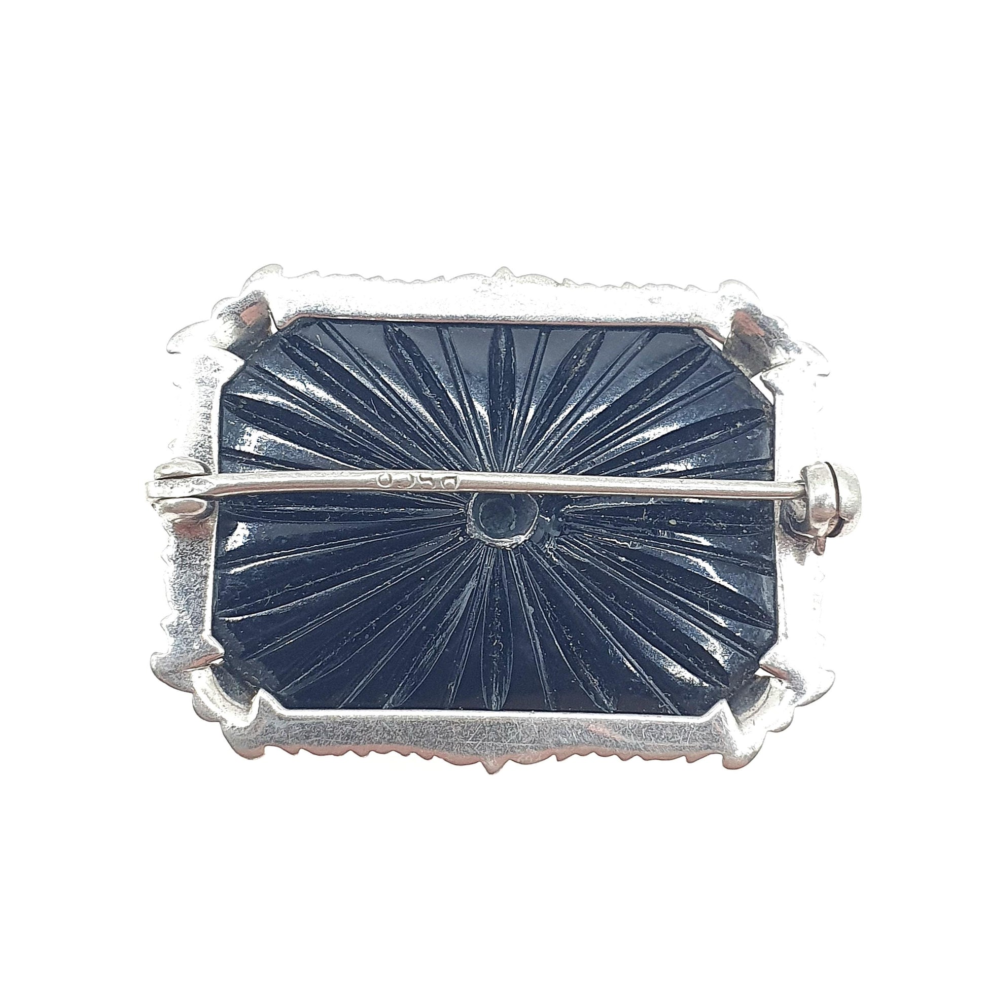 DESCRIPTION: A fantastic genuine antique art deco brooch, made from a silver tone base metal, featuring French Jet and a diamond paste. The brooch weighs 4.06g and size/dimensions can be found in the latter photos.