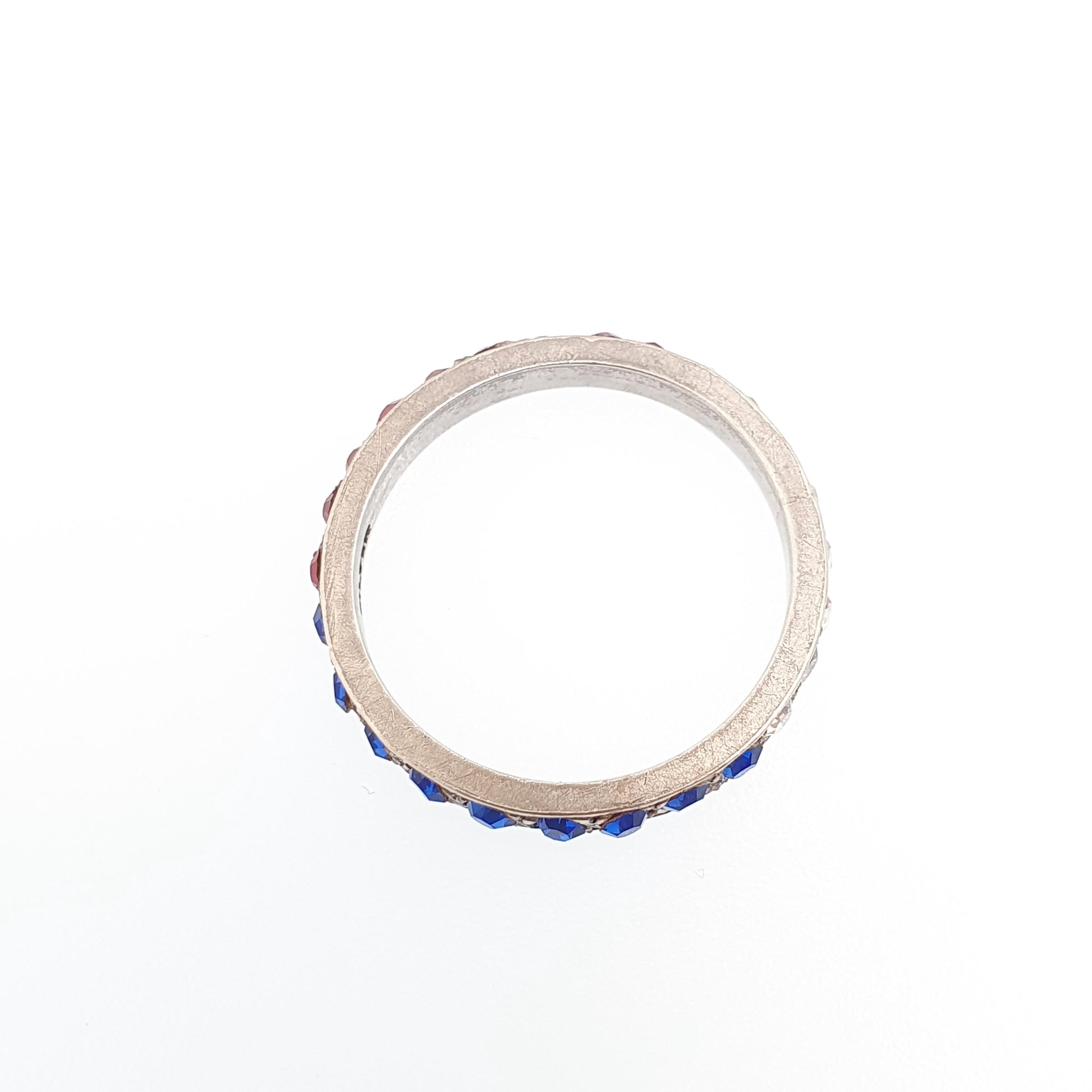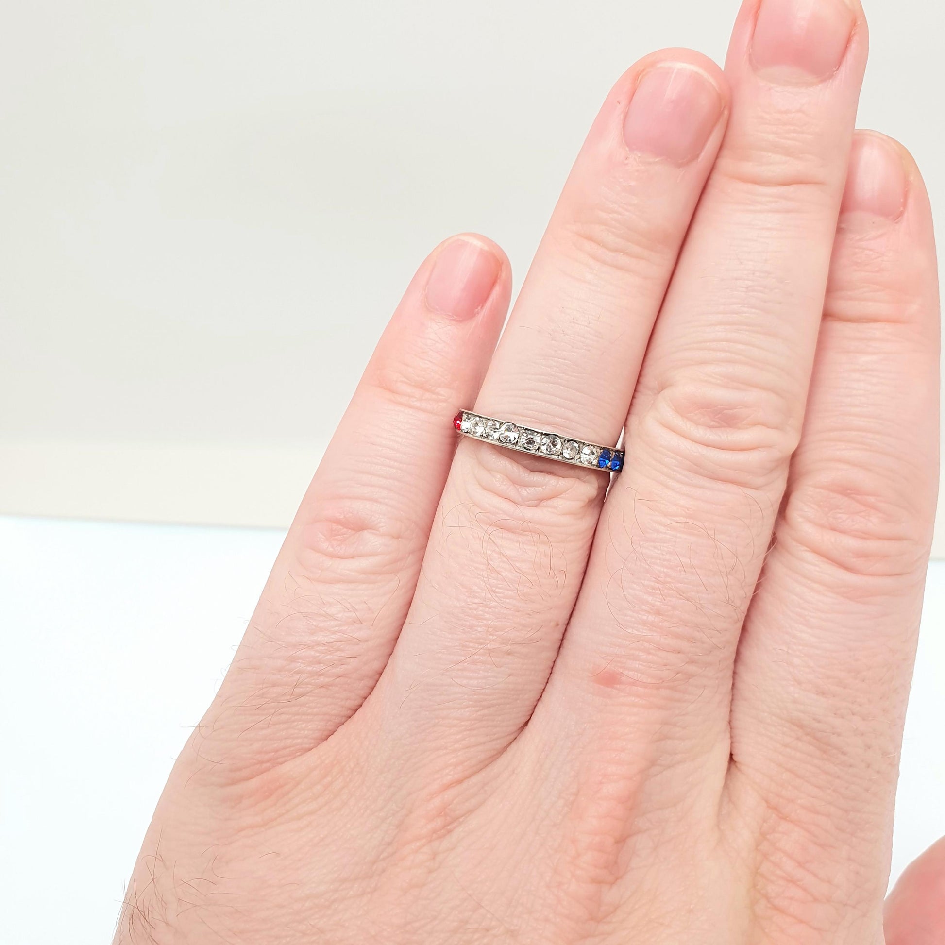 Antique Art Deco Red White & Blue Paste Solid Silver Eternity Ring Great Britain United States Colours 1920s Vintage