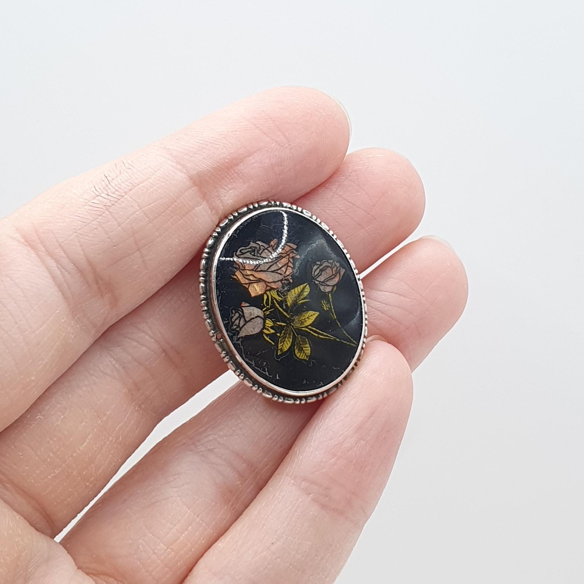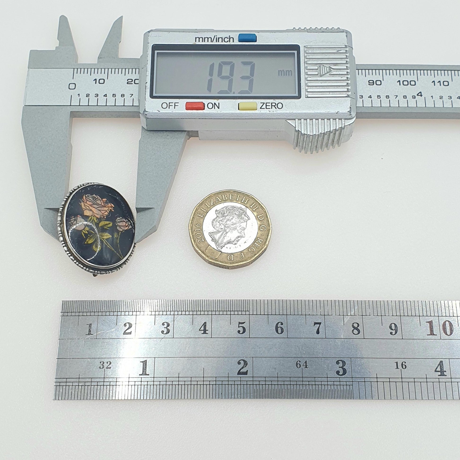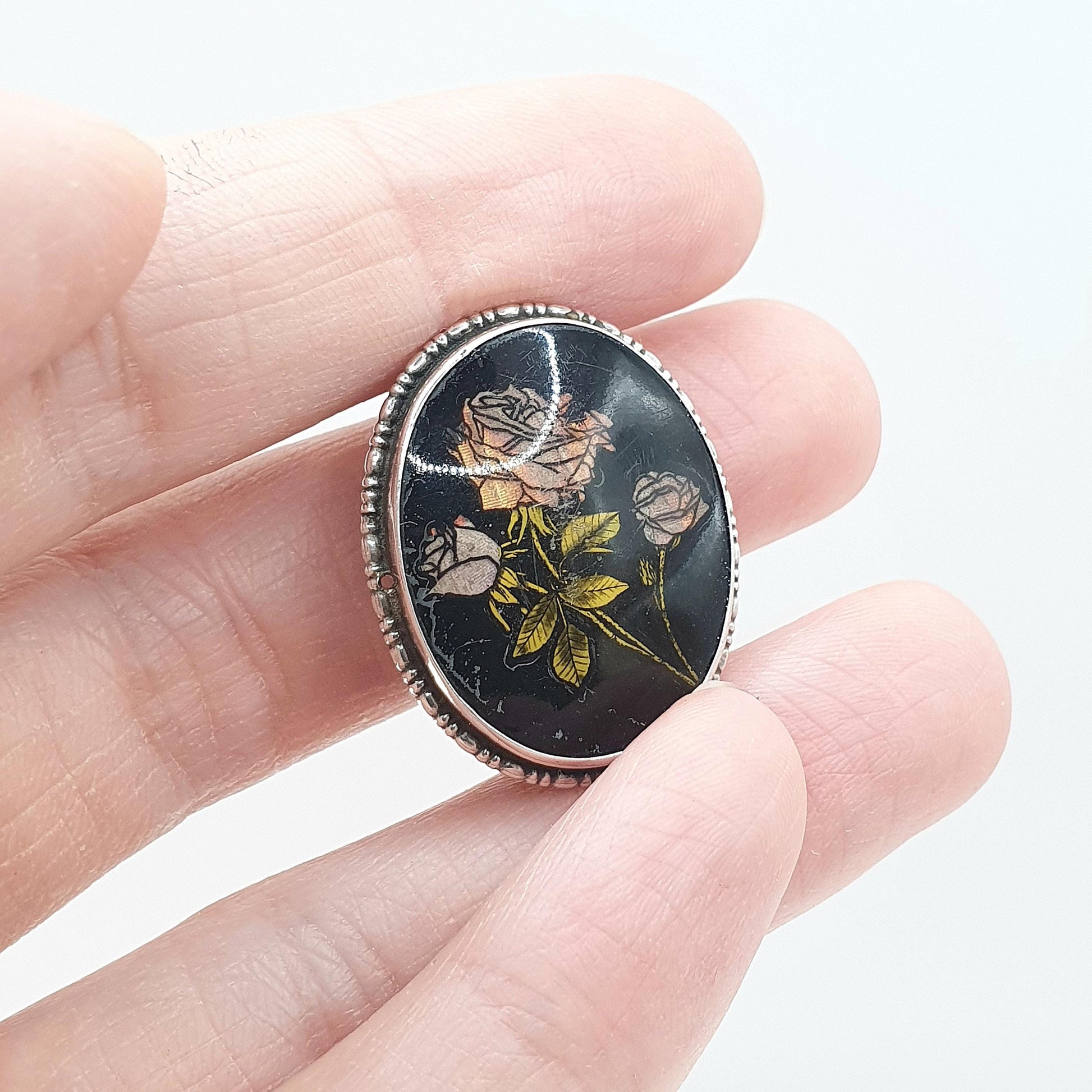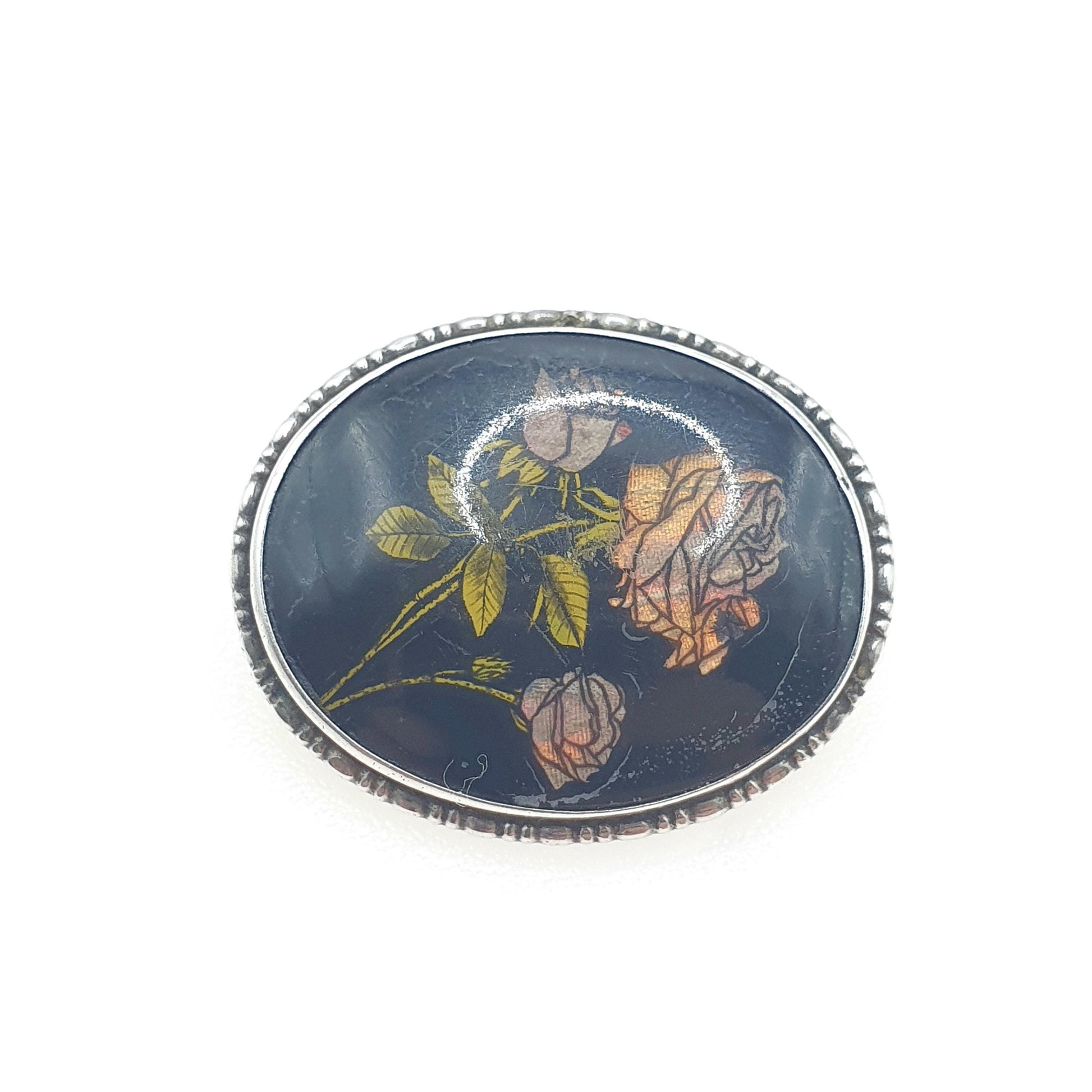 DESCRIPTION: A stunning antique art deco butterfly wing brooch, featuring a delicate image of roses. The brooch is made from sterling silver and is stamped 'Sterling England'. It weighs approx. 4.89g and the size dimensions are in the alter photos. PLEASE NOTE: The item has some marks and scratches on the glass face, see pictures/video.