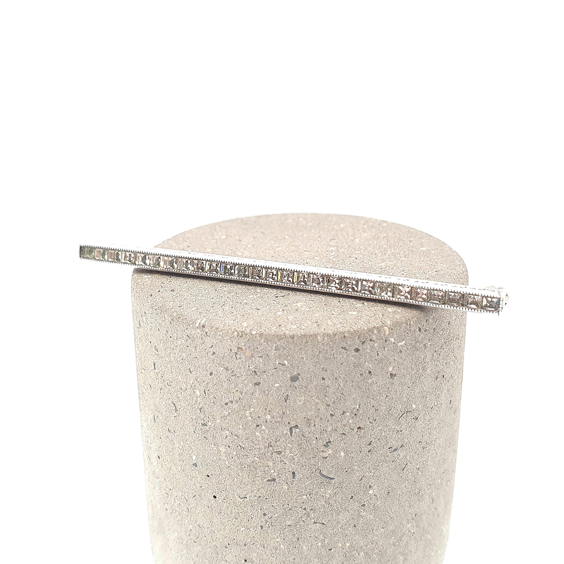 Antique Art Deco Sterling Silver Diamond Paste Bar Brooch Channel Set Square Cut Geometric 1920s Vintage Solid 925 Womens Jewellery Jewelry
