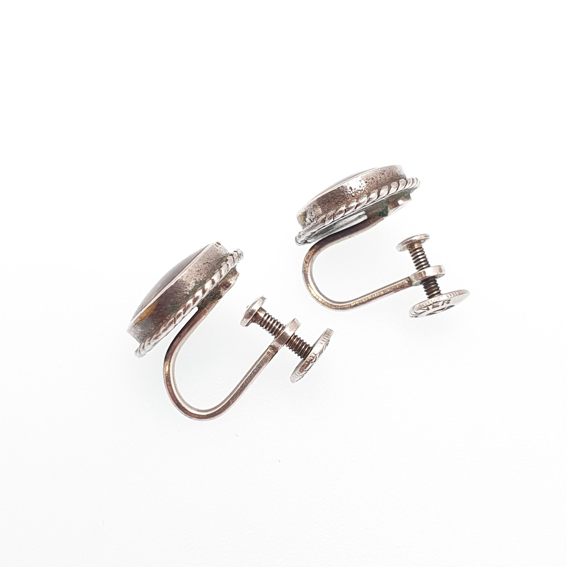 Antique Blue John Sterling Silver Earrings Rare Art Deco Cabochon Screw Back 1920s Bleu Jaune Womens Vintage 925 Gemstone Jewelry Jewellery