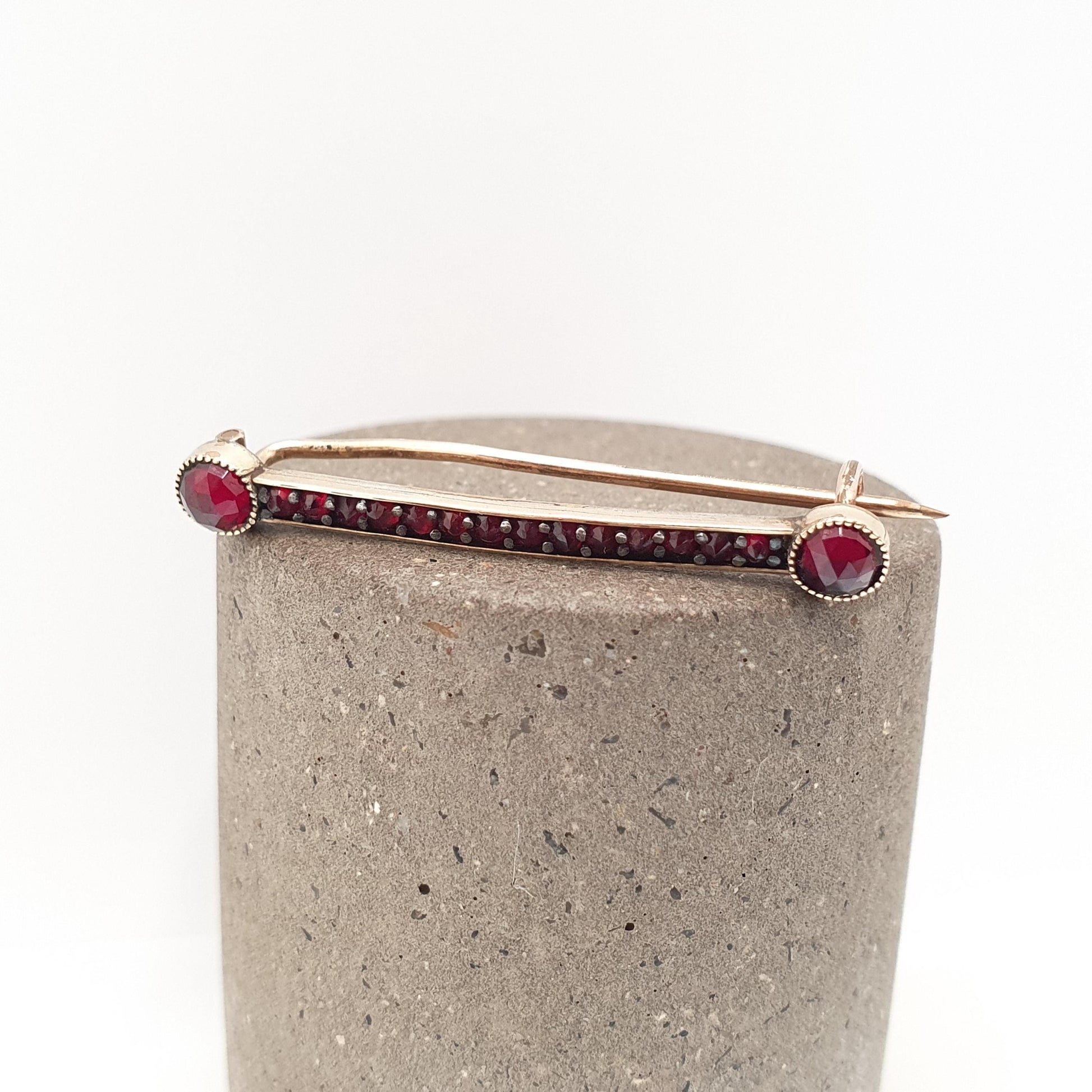 Antique Bohemian Garnet Bar Brooch Victorian Rolled Gold Filled Renaissance Revival Pyrope Vintage Womens Jewelry Jewellery