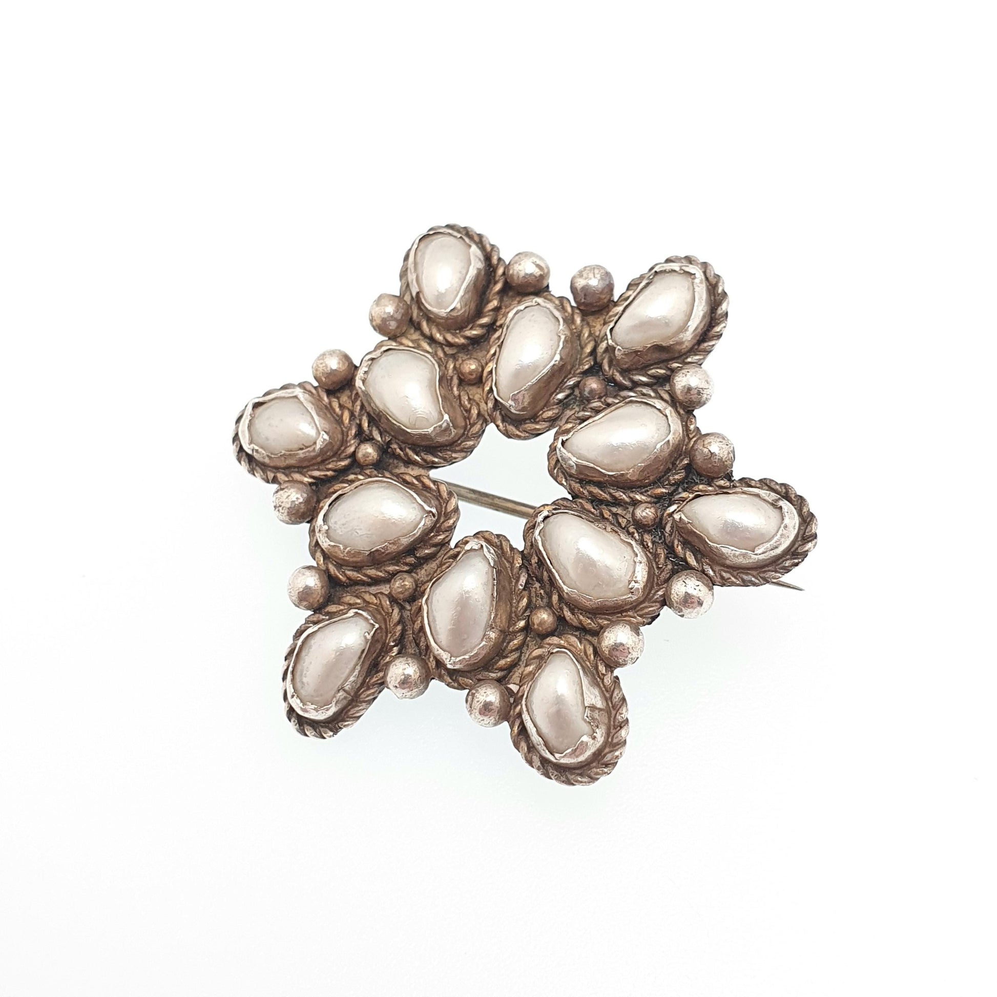 Antique Chinese Freshwater Pearl Solid Silver Brooch Star Shape Cluster Pin Natural Pearls Vintage Jewellery Jewelry