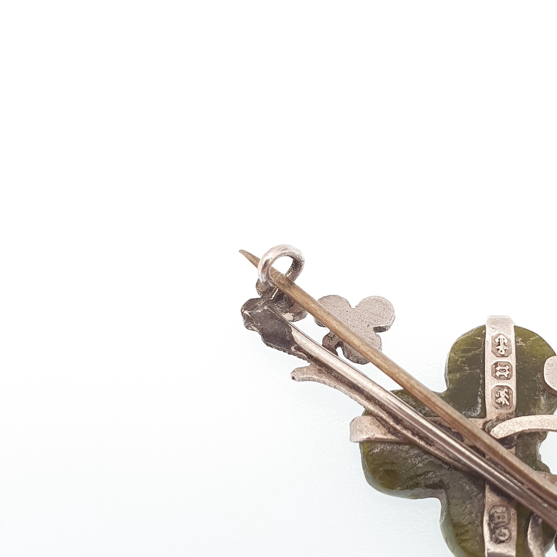 Antique Connemara Clover Brooch Sterling Silver Victorian Lucky Irish 1894 Hallmark Three Leaf Green Marble Shamrock Celtic Vintage Jewelry
