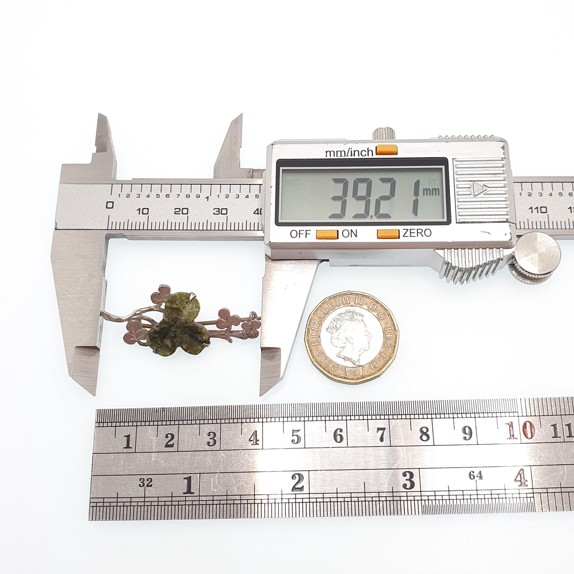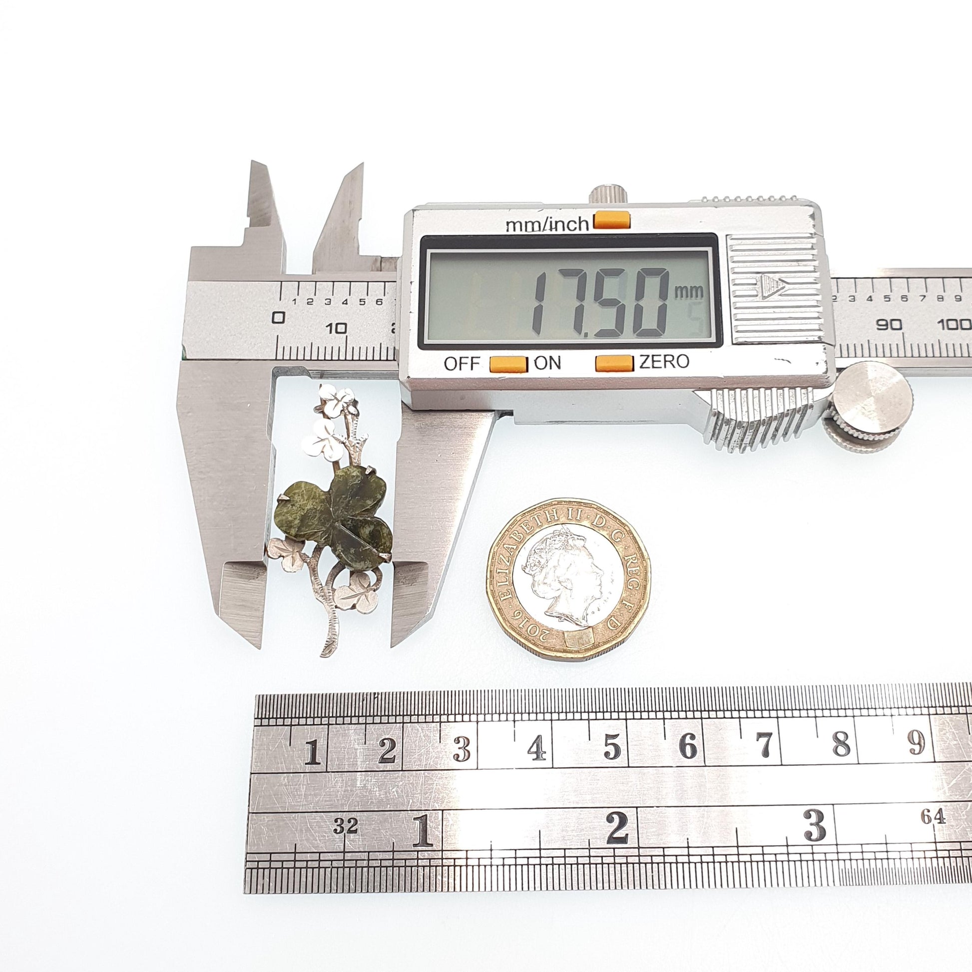 DESCRIPTION: A genuine antique Victorian sterling silver & Connemara marble clover brooch. The brooch is hallmarked for sterling silver, dating to 1894. It weighs approx. 3.41g and the size dimensions are in the later photos. PLEASE NOTE: The silver has an old lead repair near the clasp and the Connemara marble has a chip on the side, see pictures/video. I've reduced the price accordingly.