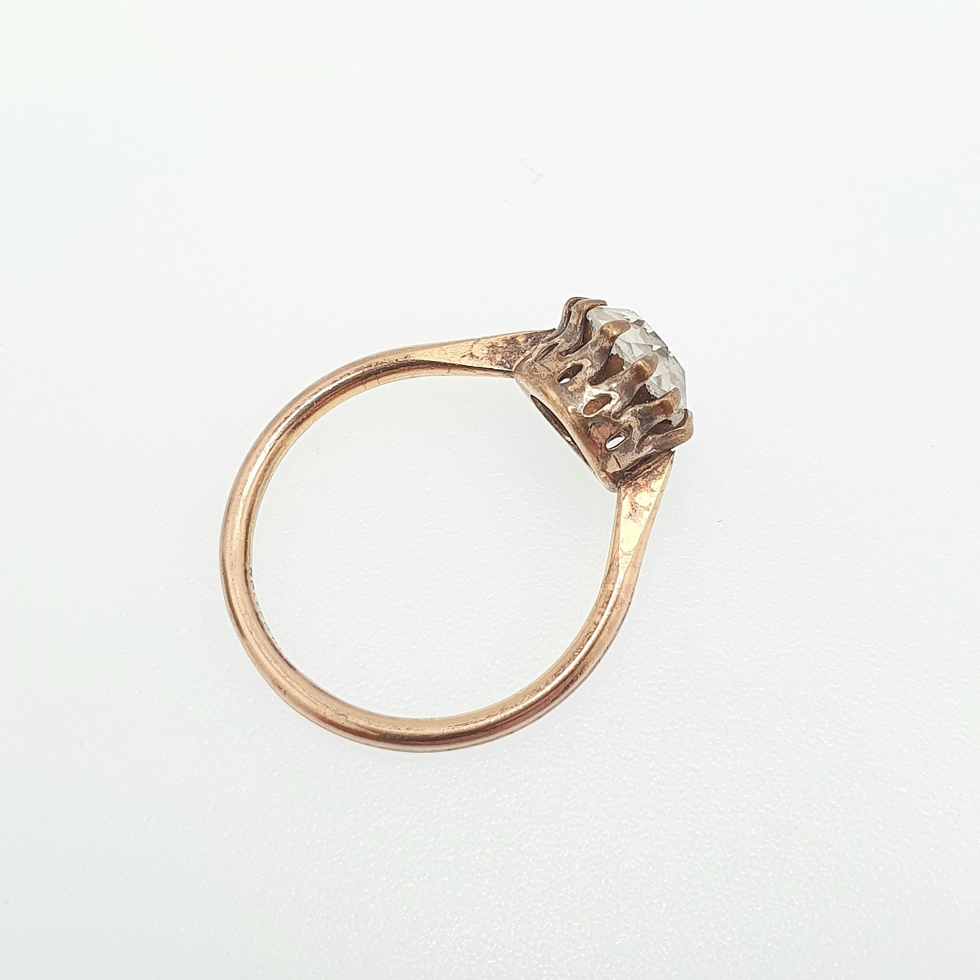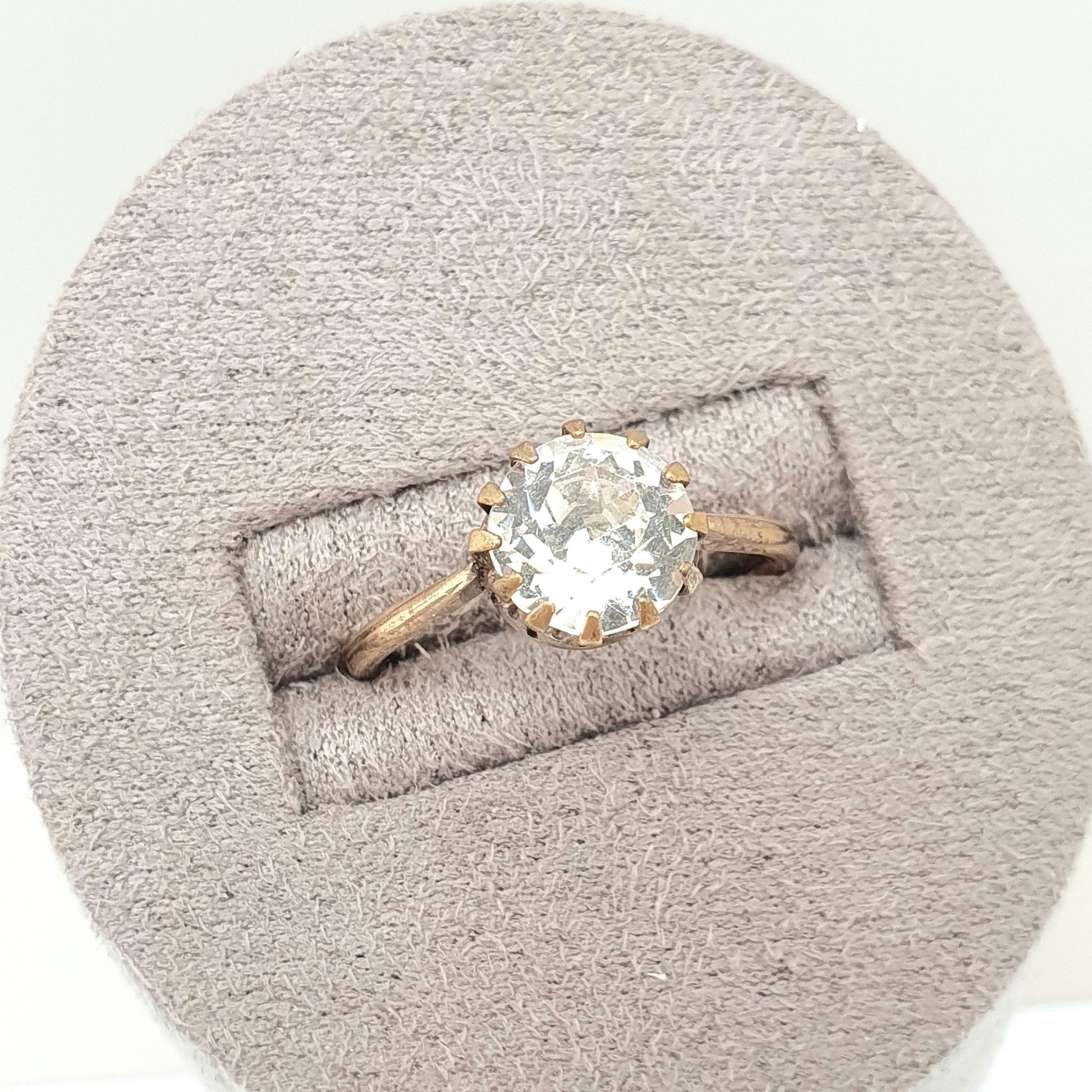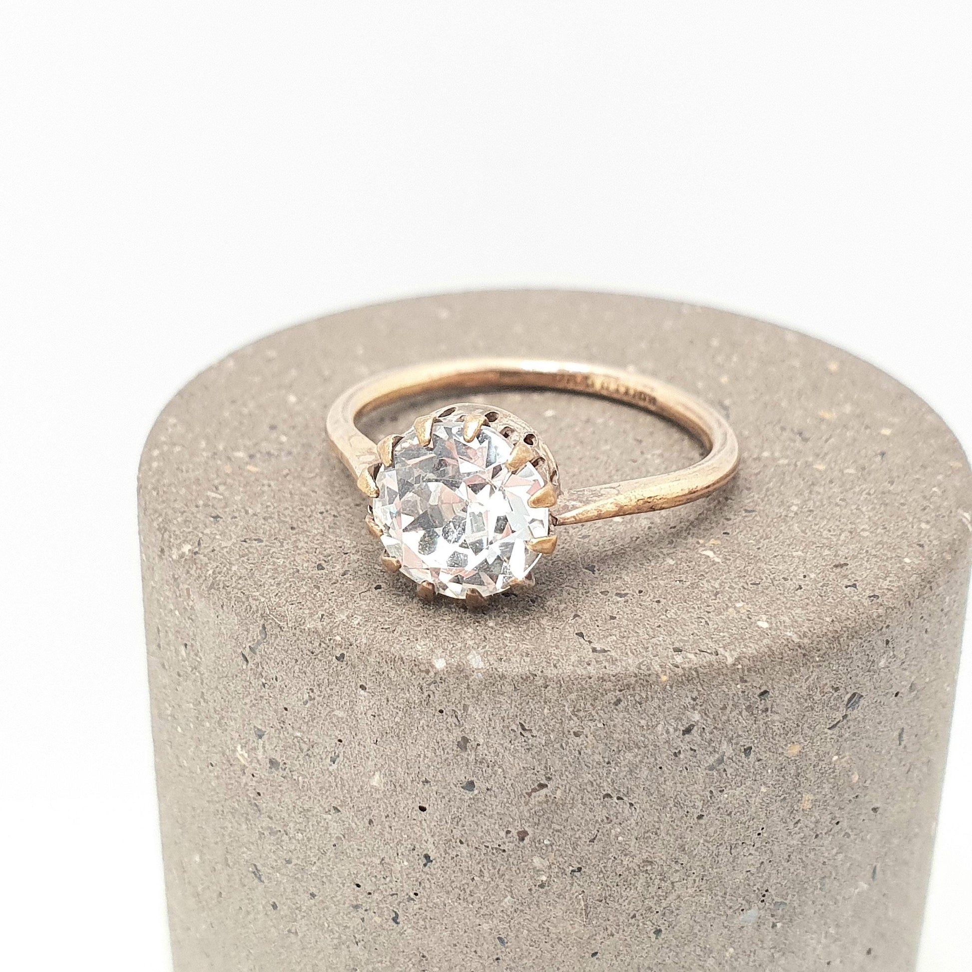 Antique Diamond Paste Rolled Gold Ring Solitaire Victorian Large Old Cut White Foiled Glass Vintage Ladies Womens Jewelry Jewellery